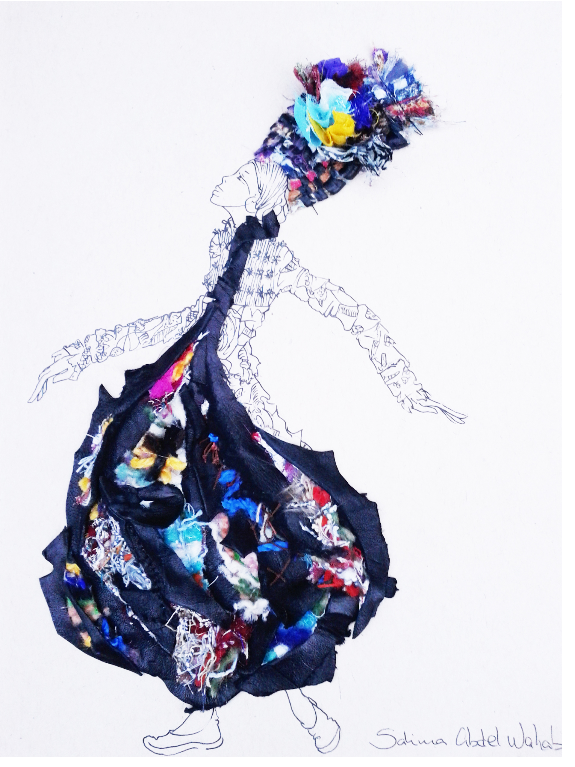 La créatrice Salima Abdel Wahab réunie en elle deux éléments essentiels : Tradition et Contemporain. Elle a notamment réalisé un « manteau globe organique » à partir des chutes de matières (cuirs, laines, tissus). Cette réutilisation apporte un message d’espoir pour un monde plus propre et vertueux.