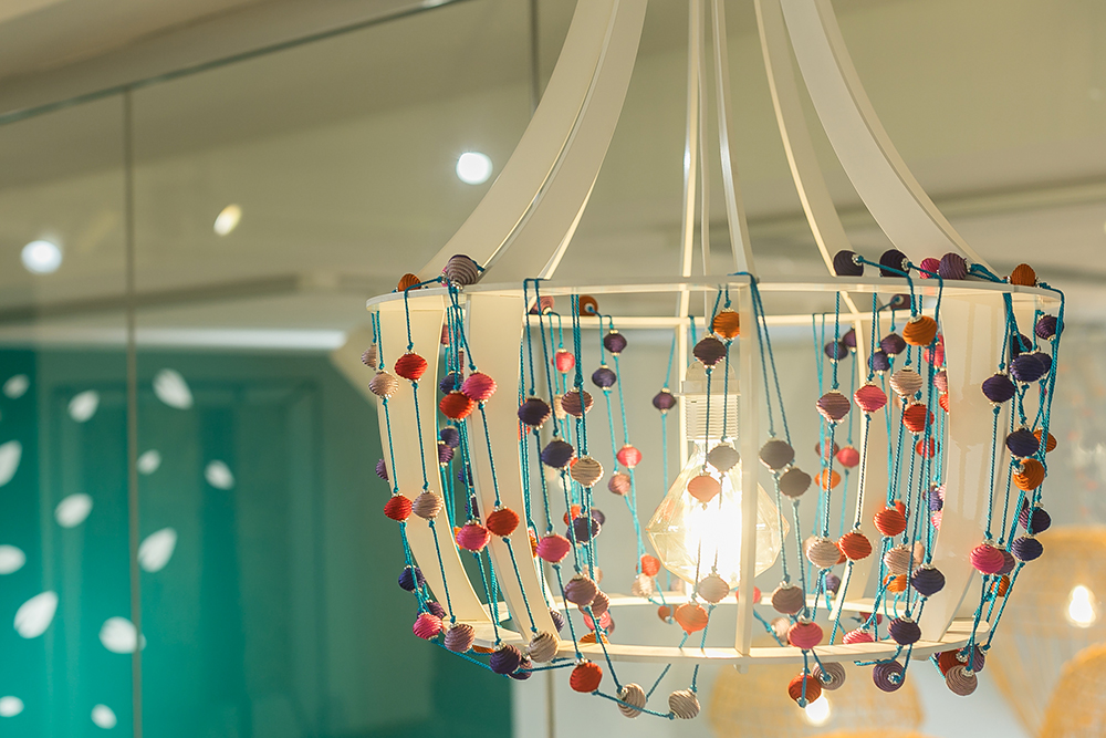 A cet égard, la suspension lumineuse est fabriquée avec une structure en bois découpée au laser. Sur cette dernière, des colliers artisanaux en sabra s’entrelacent dans une poésie aléatoire et unique. Tout le charme de l’artisanat est ainsi révélé.