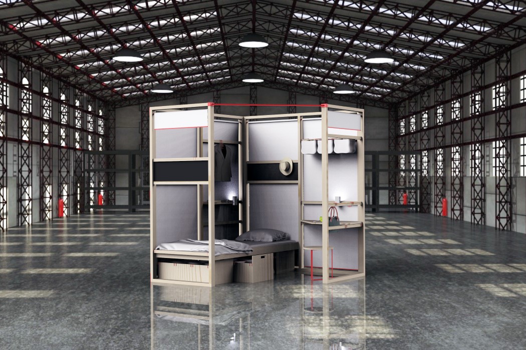 De manière générale, les éléments modulables de ces espaces d’accueil répondent aux fonctions basiques à court terme : repos, intimité et rangement. Ainsi, chaque élément peut être utilisé de différentes façons. Les habitants temporaires doivent donc adapter leur espace selon leurs besoins.