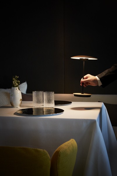 Grâce à une batterie rechargeable au lithium-ion, la nouvelle version portable de Ginger permet d’éclairer les espaces indépendamment sans la contrainte d’un fil.