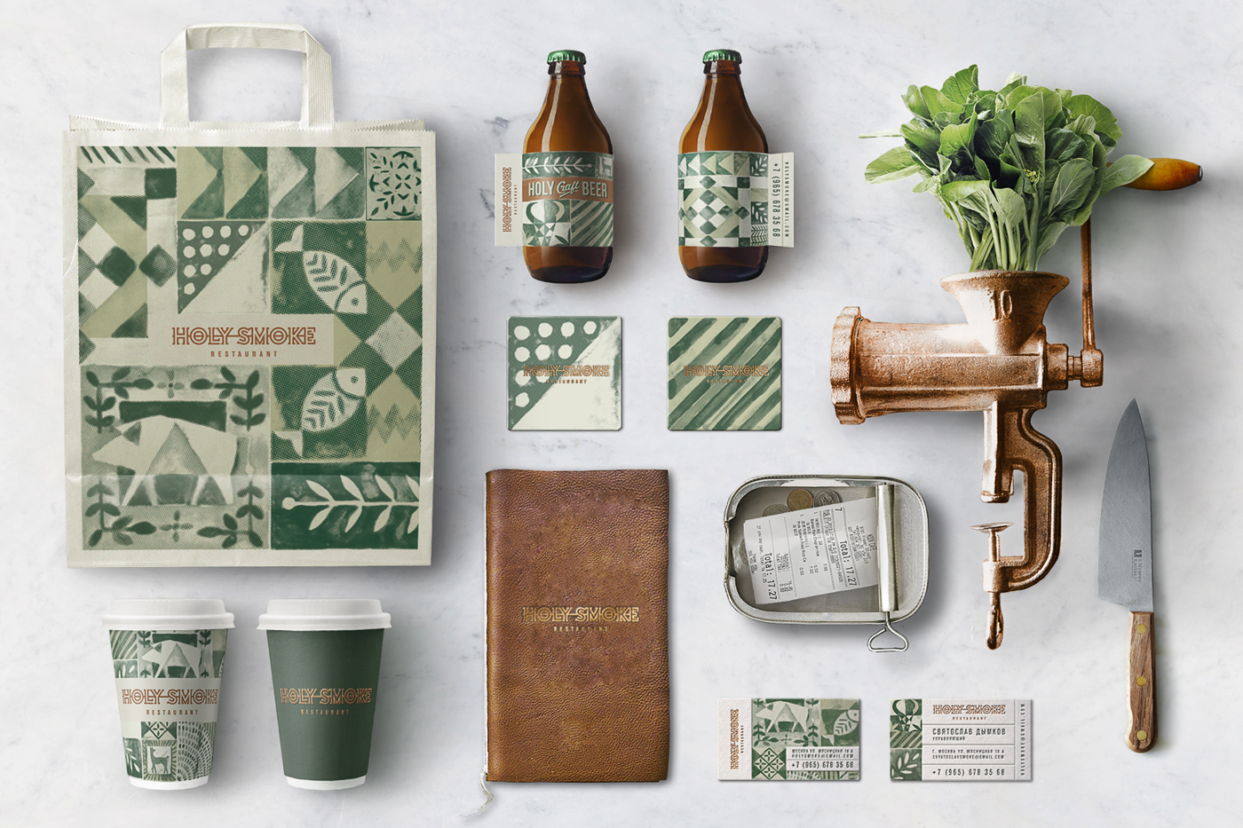 Rien n’a été laissé au hasard dans Holy Smoke Restaurant. Les meubles ainsi que les décorations ont été réalisés à la main, le tout avec des matériaux naturels en grande majorité. Le bois vient réchauffer l’atmosphère et invite à la dégustation d’un repas entre amis. Une touche de verdure émanant du plafond apporte une note atypique supplémentaire au lieu. En effet, les détails sont travaillés pour faire de cet endroit un espace à part, une bulle pour le plus grand plaisir des clients. L’attention s’est portée aussi bien sur l’espace composant le restaurant que sur les objets utilisés en son sein. Ainsi, du tablier au menu en passant par les dessous de verre, tout a été imaginé par le Bureau Dumblebee. C’est un travail conséquent mais réussi que le groupe d’amis a réalisé.