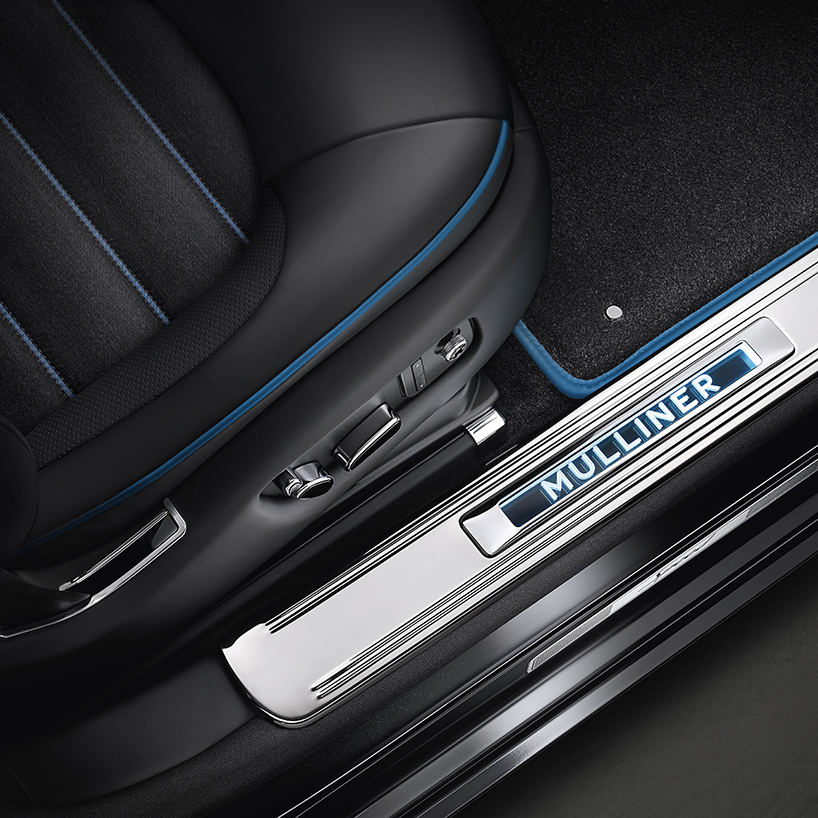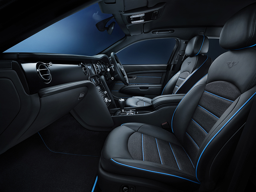 Cette Mulsanne arbore un thème foncé et présente des détails uniques, la voiture finie est frappante, furtive et contemporaine. Comme sa signature, la « Bamford Mulsanne » présente plus de noir et de teintes sombres que n’importe quelle Bentley. La finition a été obtenue par le procédé de dépôt physique en phase vapeur (PVD). Le matériau de revêtement qui produit la finition en teinte foncée est vaporisé et déposé sur chaque morceau. Puis, il se lie au matériau de base. Ainsi que la belle esthétique créée, les revêtements PVD sont plus solides et offrent une résistance accrue à la corrosion. De plus, pour contraster avec le thème sombre de l’intérieur, Bamford a désiré un certain nombre de détails de couleurs bleu. La couleur vibrante rappelle celle du martin-pêcheur. Il n’est d’ailleurs pas rare de retrouver cette teinte sur certains produits du département de montre de Bamford.