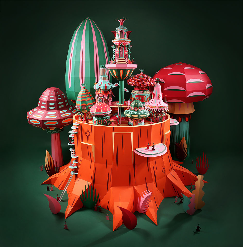 Zim & Zou est un duo d’artistes français composé de Lucie Thomas et de Thibault Zimmermann. Leur travail tout en finesse et en poésie a pris place à Dubaï, à l’occasion de l’ouverture d’une nouvelle boutique Hermès. En effet, les deux artistes se sont surpassés dans ce travail où les détails sont grandioses. De plus, tout l’univers imaginé a été réalisé avec pour seul matériau le papier. Les installations plongent tout spectateur, petit ou grand, dans un monde féerique. Couleurs et formes viennent habiller la vitrine de la boutique, voire la sublimer. En d’autres termes, Zim & Zou ont su donner vie à un univers totalement nouveau qu’ils ont baptisé « Forest Folks ».