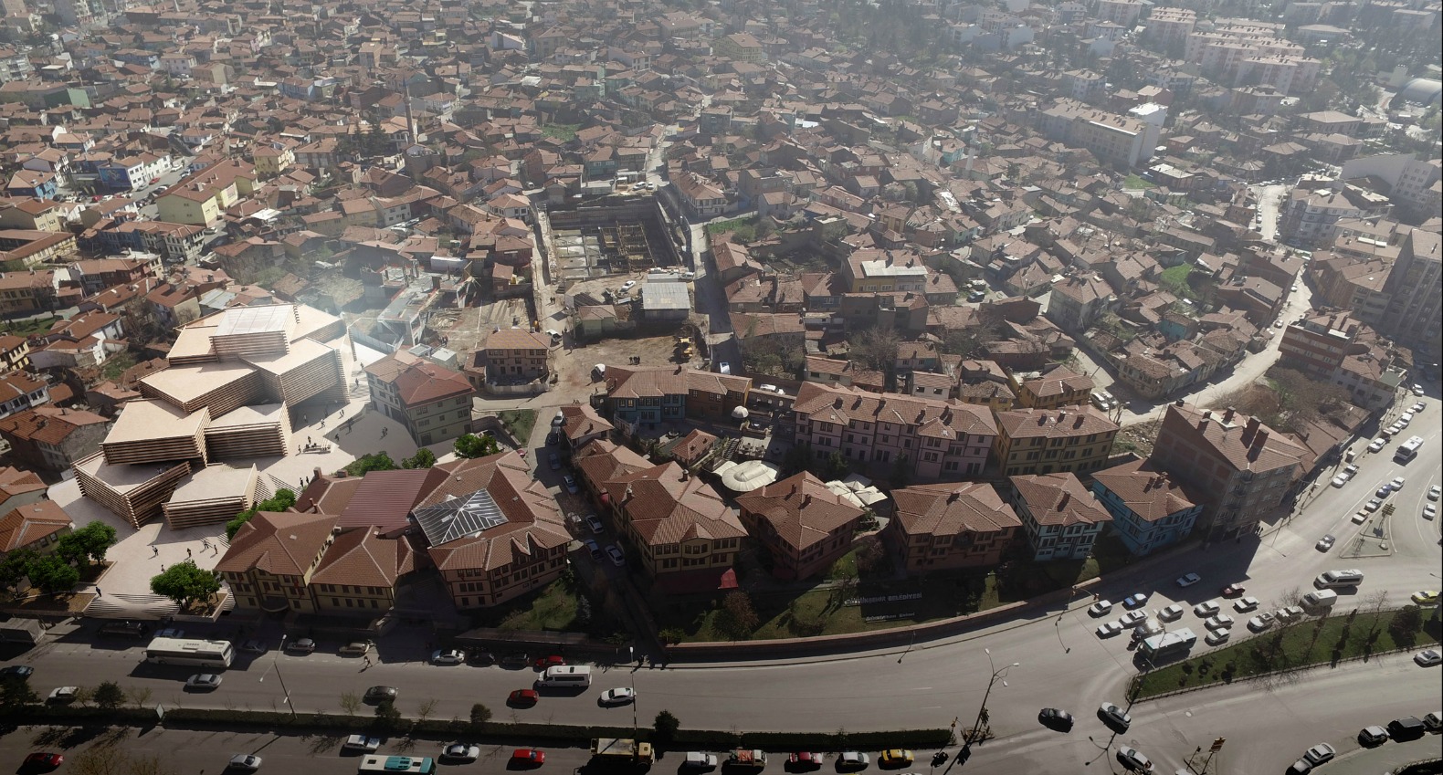 L’esthétique du musée va de pair avec ce qu’il va contenir. En effet, les architectes ont conçu le projet comme une succession de boîtes empilées. Par le biais de diverses échelles, la volumétrie générale est dynamisée. Ce parti pris permettra également de proposer des espaces d’exposition de différentes tailles une fois à l’intérieur. Or, la modernité et l’innovation n’arrivent pas seules… Ici la conception a été inspirée par l’architecture locale. Les maisons traditionnelles ottomanes fabriquées en bois présentent un volume en porte-à-faux au niveau supérieur. C’est ainsi que la concept général est apparu. De surcroît, ce projet est une belle démonstration de la manière de faire de la tradition, un atout majeur de nos jours.