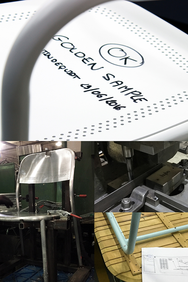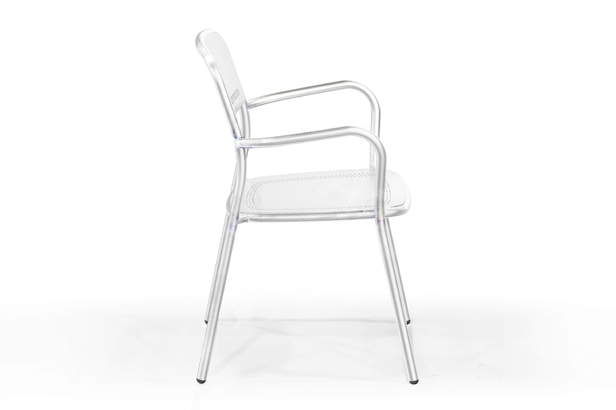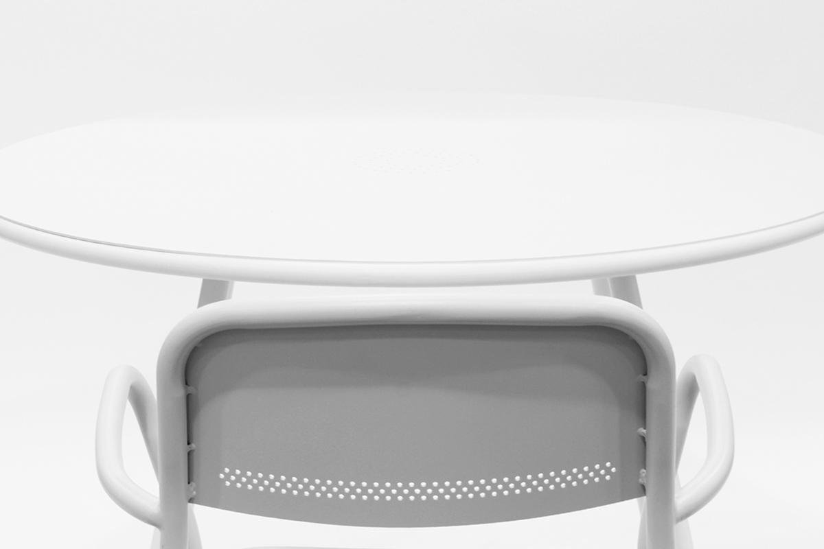 Valoriser l’aluminium en jouant fortement sur les détails d’assemblage entre les différentes parties de l’objet était le but premier de Valentin. Formes rondes sont ainsi créées pour ce mobilier, ce qui apporte une intemporalité et une réelle solidité pour un usage qui durera.