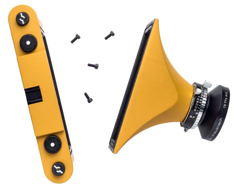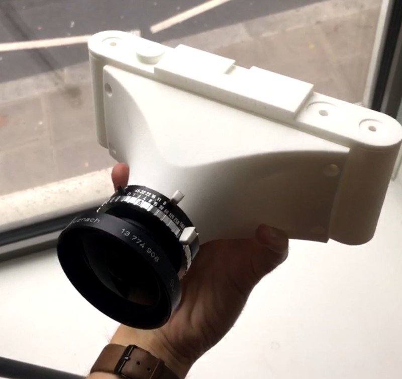 Le projet a d’abord démarré alors que Paul Kohlhaussen voulait prendre de plus grands négatifs que le format moyen standard. Or, ceci n’est généralement possible qu’avec des caméras coûteuses. Afin de réaliser son projet, Paul Kohlhaussen a examiné d’autres technologies telles que la CNC et le moulage par injection. Toute fois, l’impression 3D s’est révélée être le moyen de production le plus rentable et le plus accessible. Le produit utilise du nylon SLS en raison de sa capacité à être post-traité. L’assemblage est également facile, ce qui a sûrement appuyé le choix compte tenu du nombre de pièces. De surcroît, l’objet n’a pas eu besoin de matériel de support pendant le processus d’impression grâce à la technique de SLS. En somme, les aspects géométriques complexes à imprimer ont une finition de surface propre.
