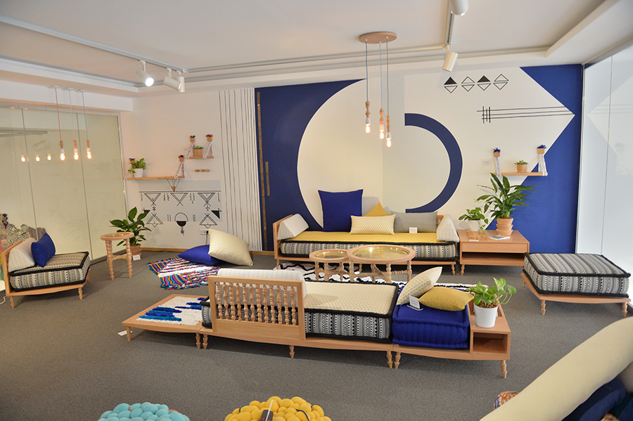 Seule demoiselle de cette édition, Soukaina Hachem transmet avec conviction sa féminité créative en concevant un coin salon dans sa totalité. En designer global, elle nous fait découvrir une expérience inspirée de la culture léguée par les femmes berbères.