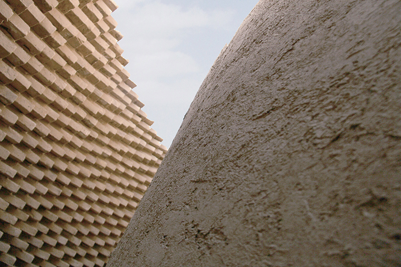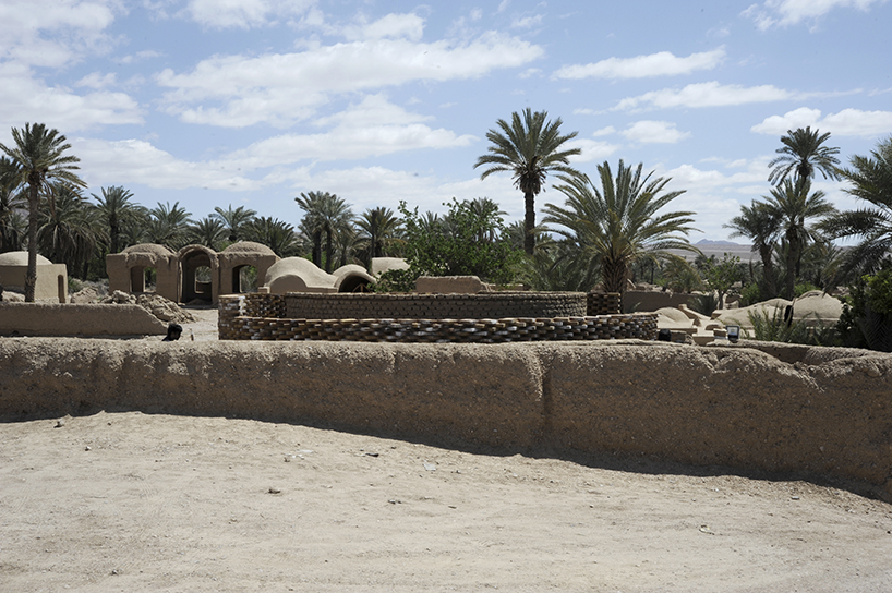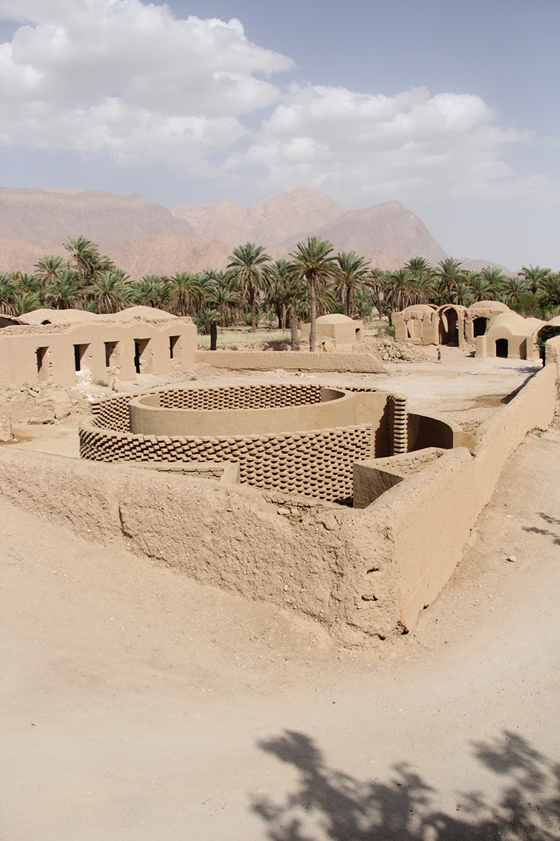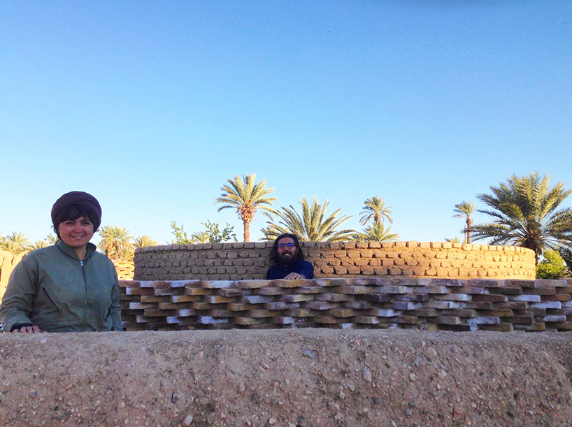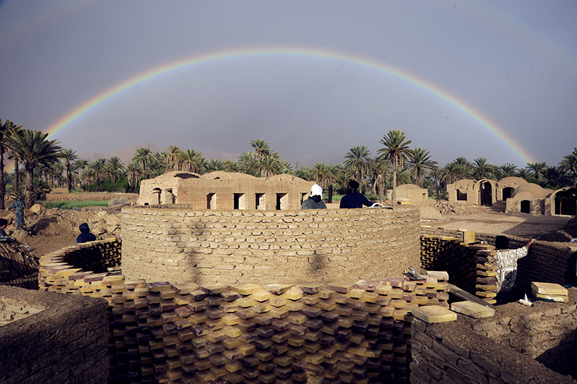 La fondation de la structure est jointe à l’aide de mortier dont les pieds nus des constructeurs ont servi à le mélanger. Cette technique artisanale et ancestrale est reprise pour fixer les briques entre elles. Les architectes contemporains sont des créatifs originaires de Londres, de Montréal et de certaines villes d’Iran comme Téhéran, Kerman et Mechhed. Au cours de travaux, les jeunes architectes ont été piégés par leur propre design. En effet, en la construisant à l’envers, ils se sont retrouvés enfermés à l’intérieur de la structure circulaire. Pour sa fondation, ils se sont basés sur une rotation de 45 degré de briques d’adobe, chacune mesurant 2 cm x 2 cm et 0,5 cm d’épaisseur.