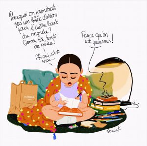 Ses illustrations colorées servent un discours pointu et un brin acerbe sur certains points mais qui ne manque jamais de faire sourire.