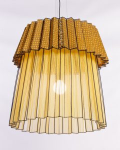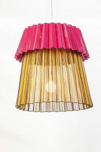 Ce luminaire trouve son inspiration dans la jupe traditionnelle portée par les femmes Tsonga, la Xibelani. Il attire l’oeil de par leurs couleurs et par leur format très imposant.
