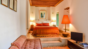 Un intérieur décoré d’un hôtel, rempli de meubles et d’objets, se donne à voir comme une image, un métalangage susceptible d’être lu et déchiffré. Il tend à être une imitation ou une copie conforme à un modèle-type dicté par une culture. Cette image est vendue soit en image picturale (sur des sites web spécialisés en promotion touristique) soit en image réelle quand un visiteur voyageur en fait l’expérience effective : il découvre et parcourt les spatialités en enregistrant des images qui deviendront des souvenirs. A son tour, le voyageur sujet, une fois satisfait de la prestation peut jouer le rôle d’un promoteur, voire d’un médiateur, grâce à son expérience vécue.