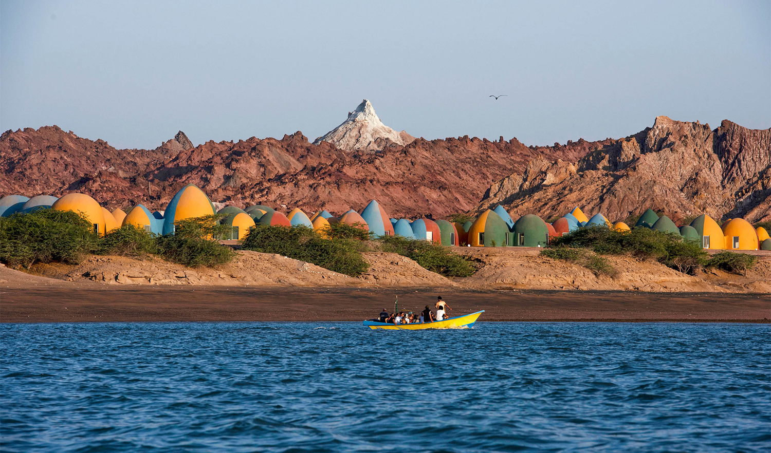 Si l’on passe par Hormuz, on peut y voir des dômes colorés, dessinés par les architectes de ZAV, un bureau iranien d’architecture dont le but est de donner du pouvoir à la population locale. Ce groupe d’architectes propose des solutions concrètes d’architecture et de développement urbain visant à revitaliser des lieux peu valorisés par les autorités. Leur méthodologie de travail, centrée sur le contexte socio-économique des communautés locales, leur permet de donner du pouvoir aux habitants en redéveloppant un lieu. Dans le cas de Hormuz, le résultat de ce travail prend la forme de dômes colorés.