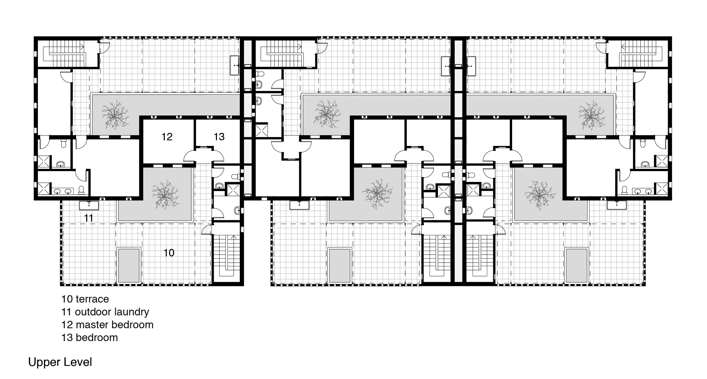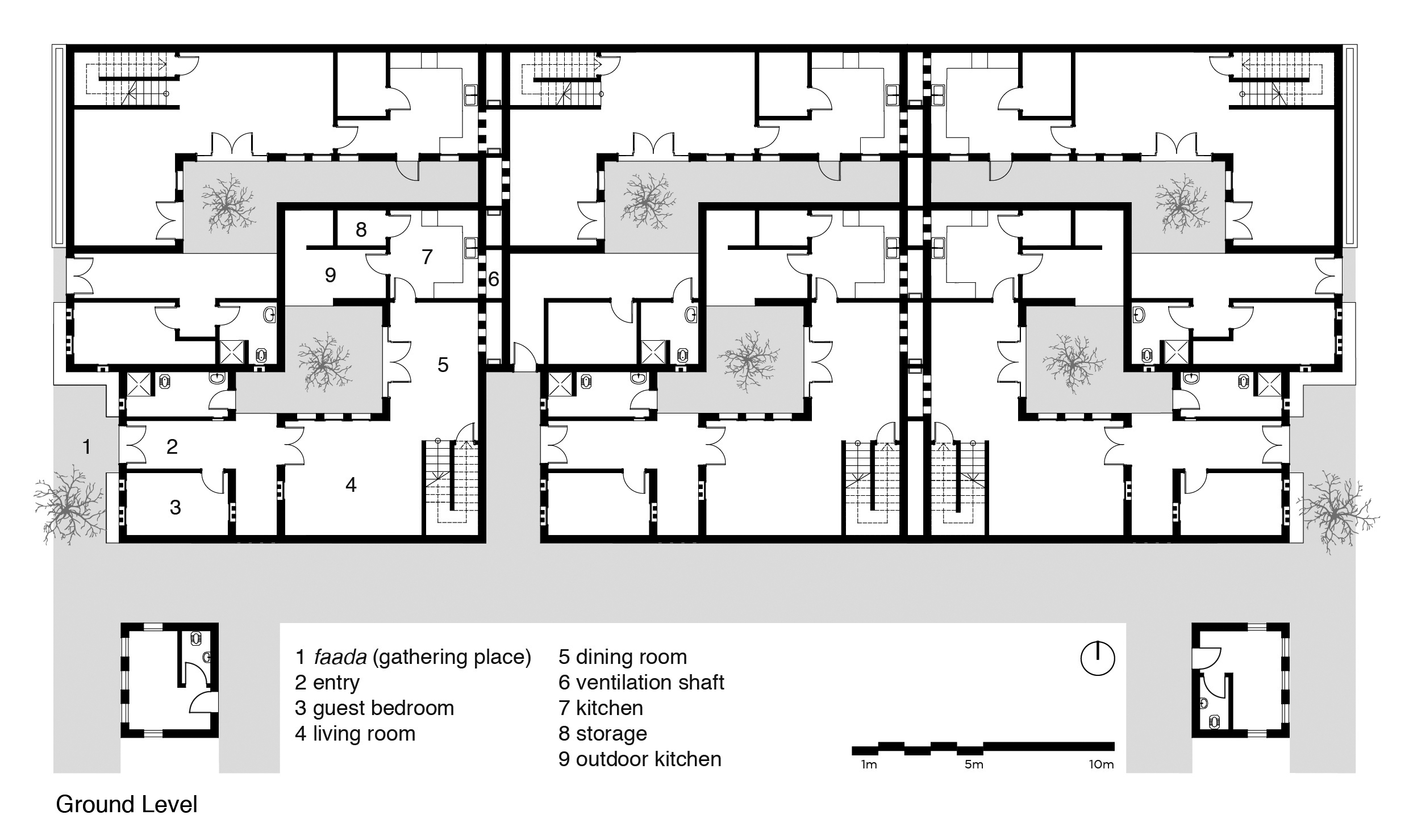 Vu la hauteur relativement faible de ces habitations, pourquoi atelier masōmī n’a-t-il pas préféré concevoir des immeubles ? D’après cette agence, la réponse est simple : les immeubles d’appartements ne sont pas appropriés à la culture et aux usages locaux. Par conséquent, atelier masōmī a préféré revisiter la maison de plain-pied traditionnelle en lui ajoutant seulement un étage – ou deux.