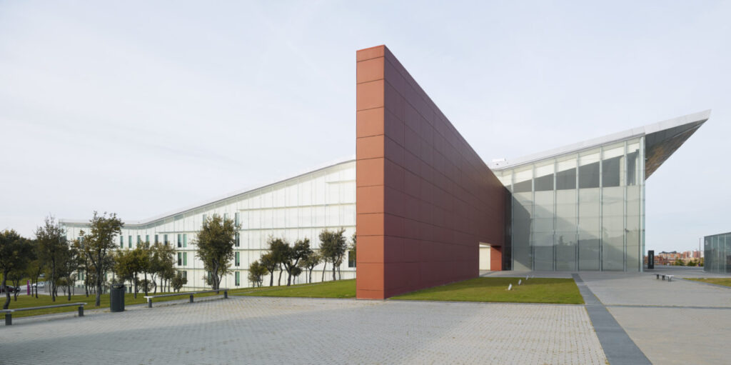Un bâtiment qui abrite le siège de « l’Orquesta Sinfónica de Castilla y Leon », avec une toiture en forme de vague, inspirée des ondes musicales. Trois blocs sont articulés autour d’un atrium interactif, avec des ouvertures zénithales qui illuminent l’espace. Un ensemble de services culturels peuvent prendre place dans l’auditorium polyvalent, la salle d’orchestre ou la salle de musique. Tous des espaces sont modulables, avec des meilleures performances acoustiques optimales.