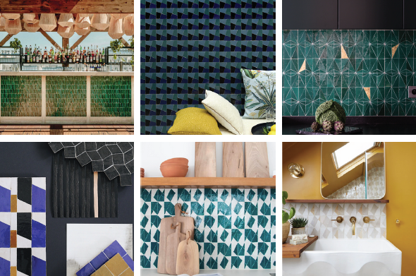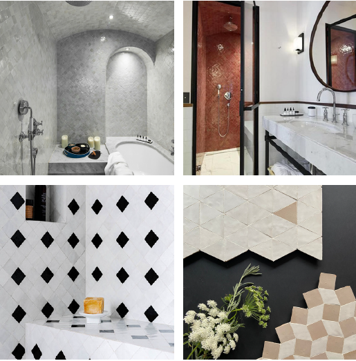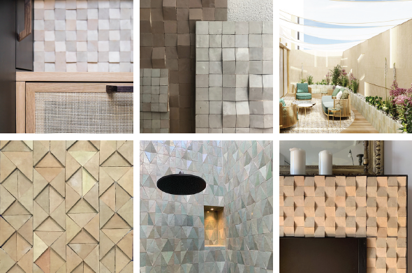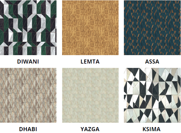 Collection Creative, une nouvelle manière de penser le zellige. Nuances de bleu, de beige, de marron se mêlent aux formes triangulaires, rectangulaires ou encore curvilignes pour un ordonnancement parfait dans vos différents espaces.
