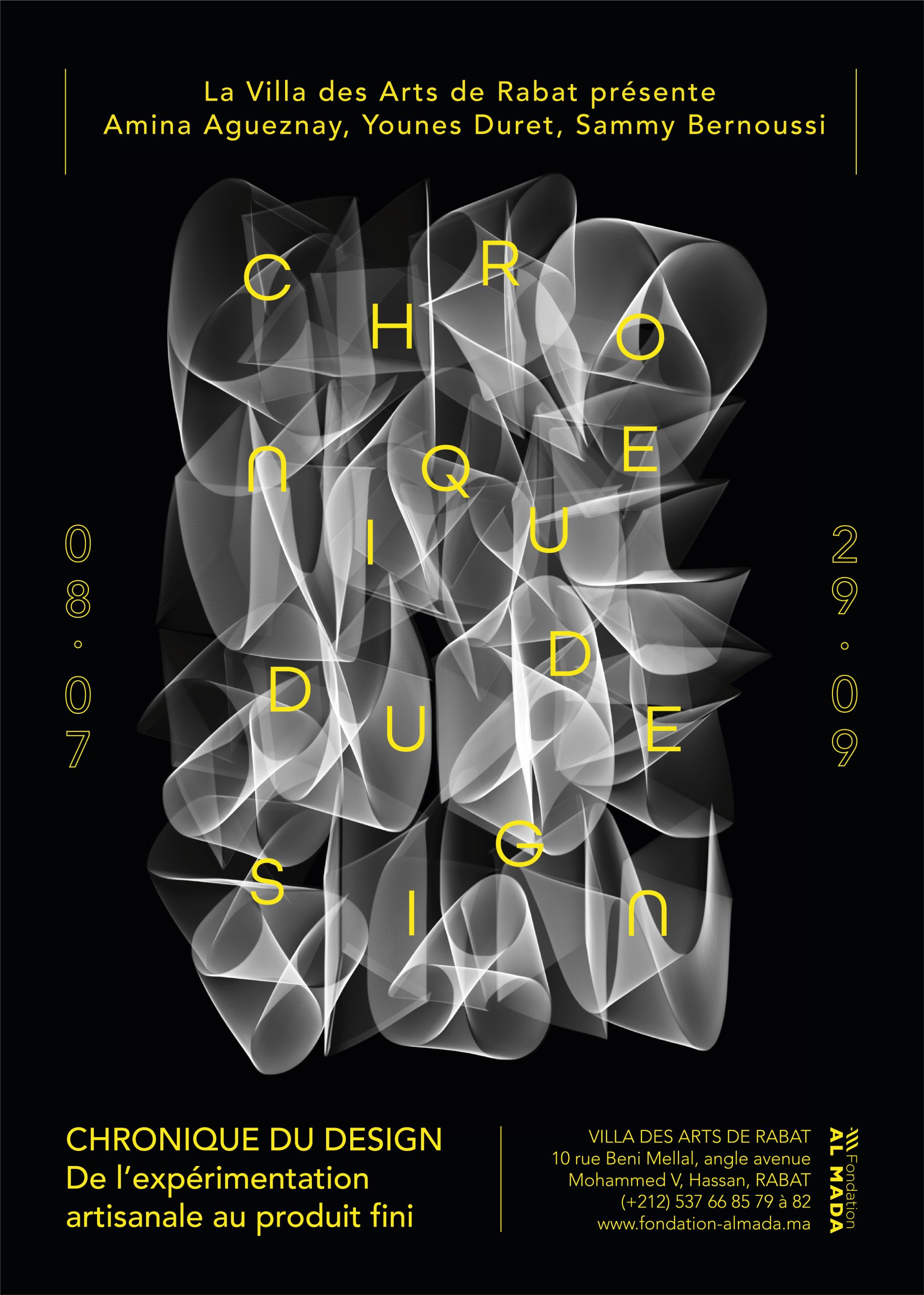 Amina Agueznay, Younes Duret et Sammy Bernoussi , au parcours très différent, sont résolument liés par une passion commune. Celle du design d’objet avec la réflexion créative et l’expérimentation artisanale qui l’accompagnent. Pour la première fois et sans retenue, chacun des trois designers expose aux visiteurs de la prestigieuse Villa des Arts de Rabat, son processus créatif articulé autour d’expériences et de recherches, de doutes et d’audaces. Cet événement, initié par la Fondation Al Mada, s’inscrit dans le cadre de Rabat, Capitale culturelle africaine.