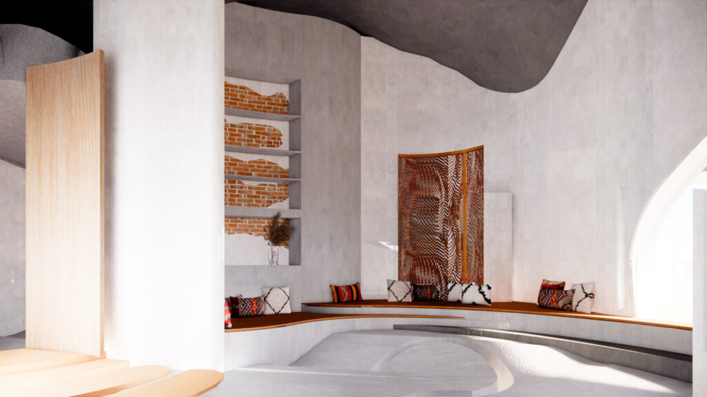 Ayant pour idée maitresse la création d’un hôpital de jour pour les gens souffrant d’une maladie mentale, le projet d’Ikram Azizi révolutionne le regard sur la santé mentale dans la société marocaine. En encourageant les gens à s’imprégner des centres thérapeutiques, il fait parfaitement le lien entre l’architecture et la santé mentale dans le cadre d’une psychologie de l’espace où l’Homme est au cœur de toute préoccupation.
