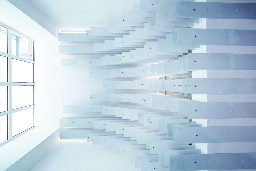 L’atout majeur du projet est une structure transcendante. Situées à l’entrée du projet, des lames horizontales se superposent dans l’espace selon une courbe paramétrique de telle sorte à laisser pénétrer les rayons lumineux jusqu’au fond de la salle.