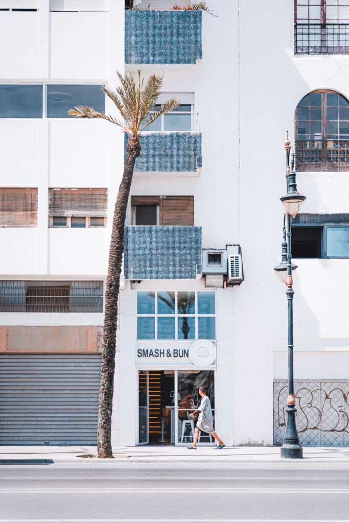 Vous êtes dans la ville du détroit, vous avez une petite faim et vous voulez bien manger sur le pouce un Smash burger, ce très populaire hamburger venu d’outre Atlantique servi dans un « potato bun », pain brioché réalisé avec de la pomme de terre. Qu’à cela ne tienne ! Smash&Bun, niché au centre de la baie de Tanger, répond parfaitement à votre besoin gustatif malgré une contrainte spatiale et fonctionnelle évidente, très bien gérée par le talentueux architecte tangérois Younes Diouri. Ici, pas de place à la fioriture, le burger est Roi. Vous allez le manger dans un cadre résolument minimaliste et épuré, telle est la promesse!