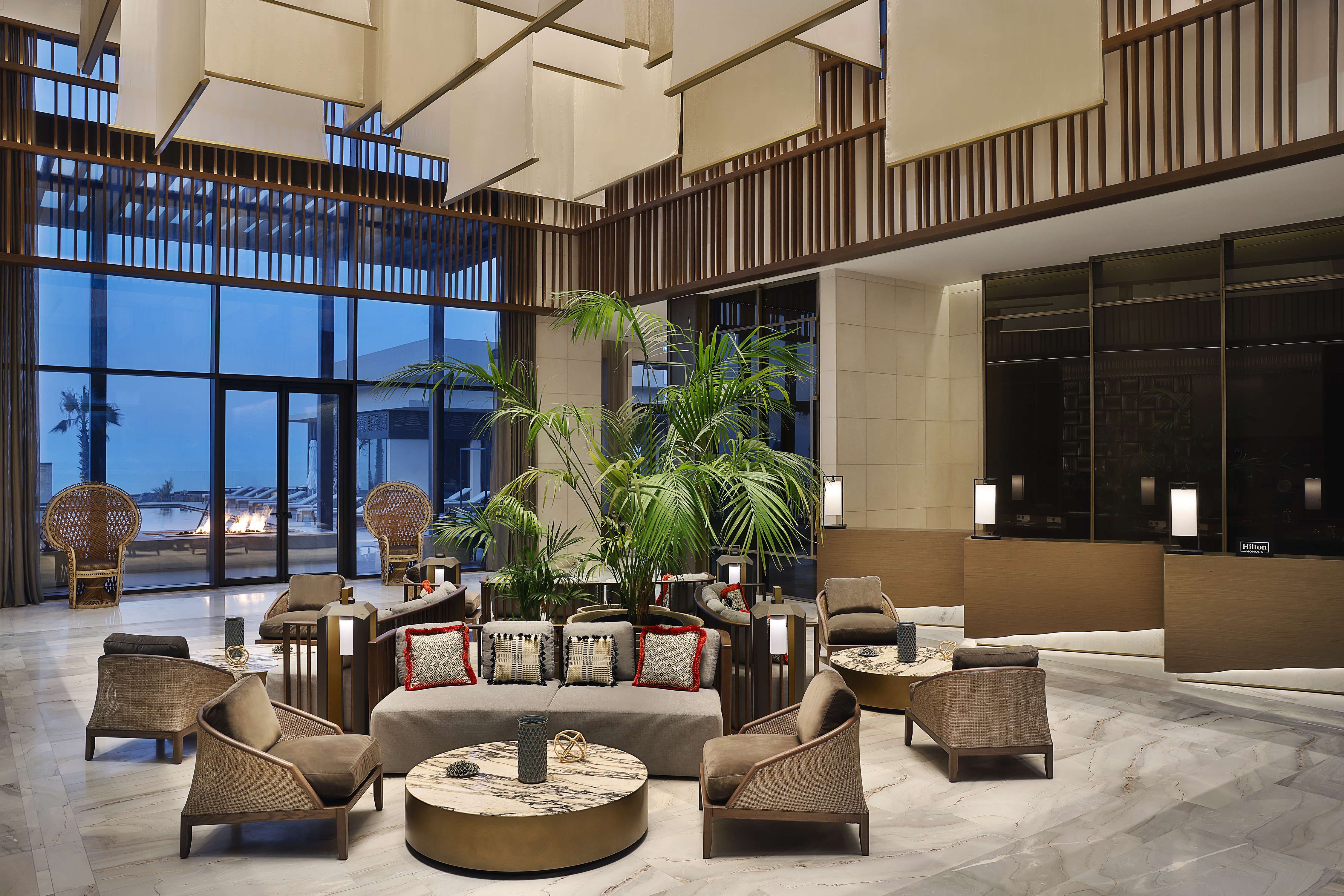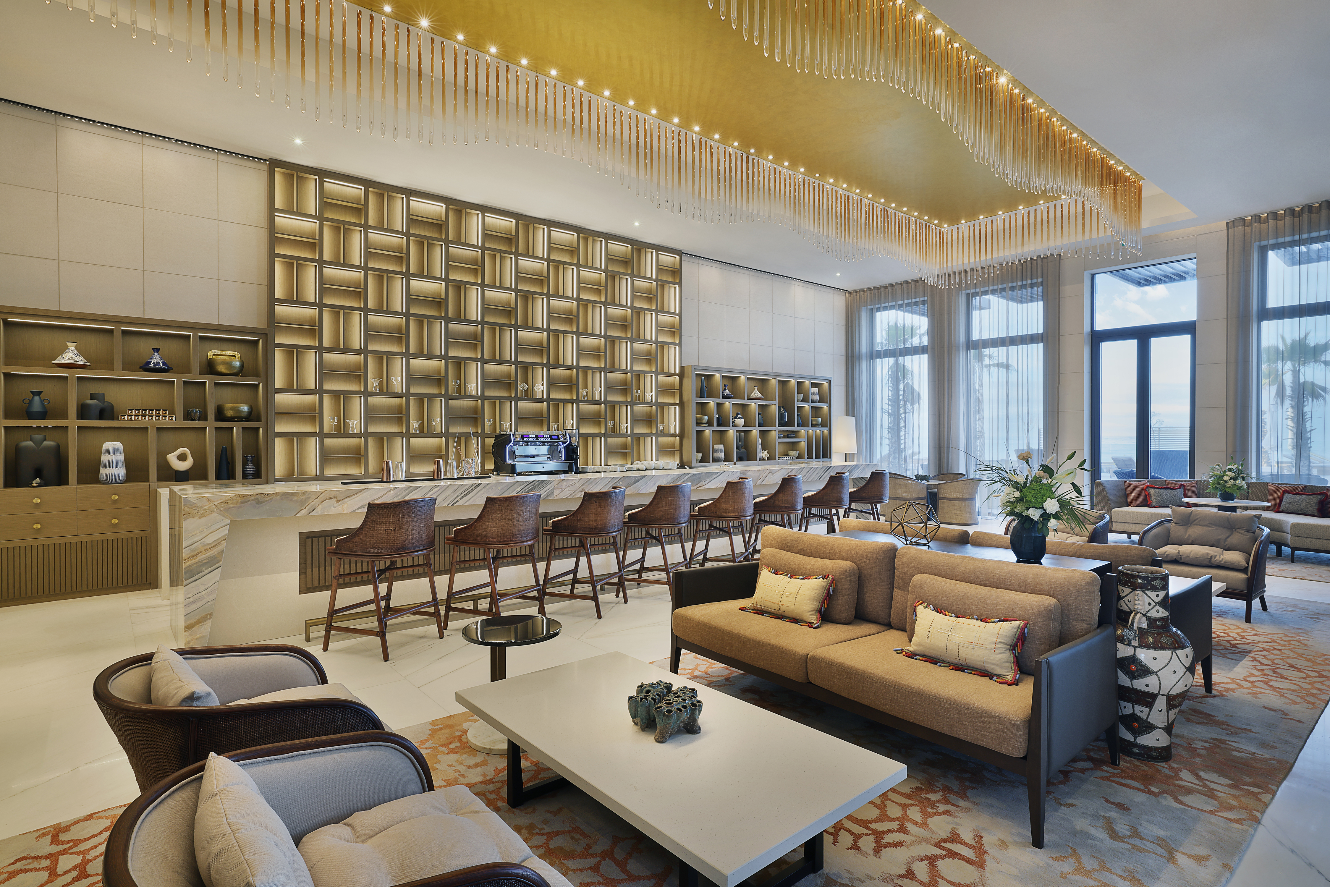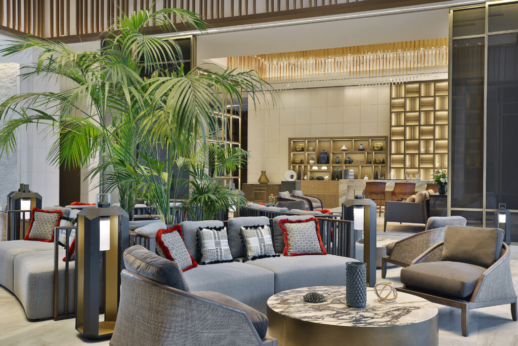 Le Conrad Rabat Arzana est une destination de choix pour les voyageurs en quête de confort et de sérénité. Dès l’entrée vous êtes accueilli dans un lobby spacieux et lumineux avec une vue imprenable la piscine et l’horizon bleu ; le voyage commence ici dans un décor moderne et élégant. Une hauteur agrémentée de suspensions qui viennent envelopper de matières ce lobby sur mer. Bordé par plusieurs espaces de détente de d’attente, le hall d’accueil invite à la contemplation les yeux rivés ou perchés !