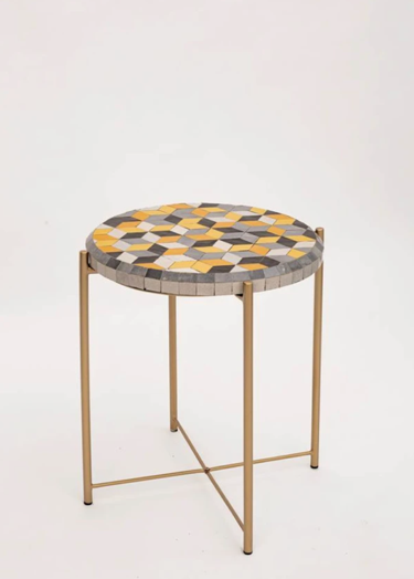 Aït-Manos a imaginé la collection Zellitable : sur un piétement en métal doré et patiné aux allures art déco vient se poser délicatement un plateau en Zellige entièrement réalisé à la main. Déclinées en patchwork de couleurs, ces tables subliment la tradition du zellige.