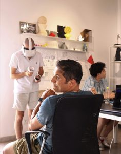 A l’initiative de l’Art Center College of Design et de la Motorcycle Art Foundation, des ateliers encadrés par Safir Bellali ainsi que Greg Hatton ont donné l’opportunité à deux jeunes créatifs ghanéens de venir au Maroc afin de participer à ce programme. Après une présentation passionnante des parcours respectifs de Safir et Greg, Samuel Abogaye designer autodidacte et Efo Selasi content creator on pu découvrir le matériel mis à leur disposition dans l’espace « workshops » du studio : imprimantes 3D, casques de réalité virtuelle mais aussi les créations de Younes Duret présentes sur place !