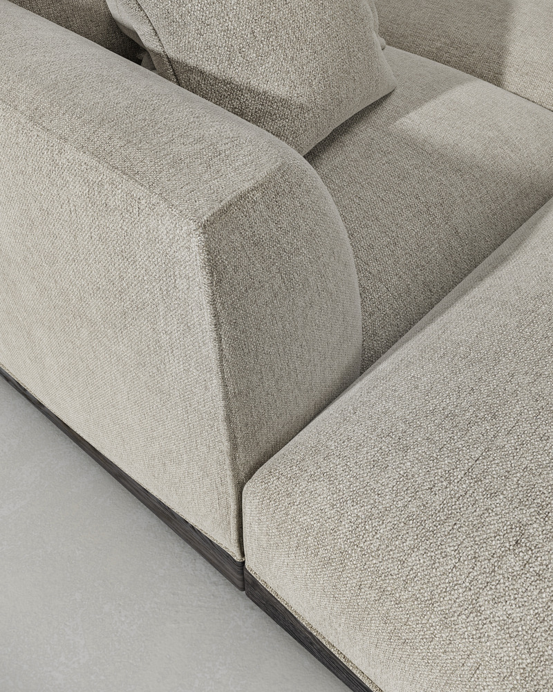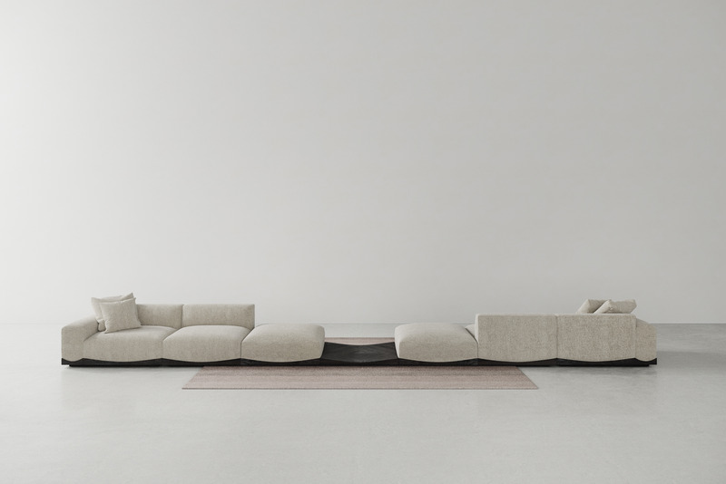 Caractérisée par une courbure au sommet de la base en bois massif, la collection rend un hommage explicite à l’architecture asiatique traditionnelle. Les lignes courbes se reflètent sinueusement dans les volumes solides des sièges, des dossiers et des accoudoirs, créant ainsi une identité forte et donnant à la collection un aspect résolument contemporain. Chaque élément de la collection représente une œuvre d’art sculpturale.