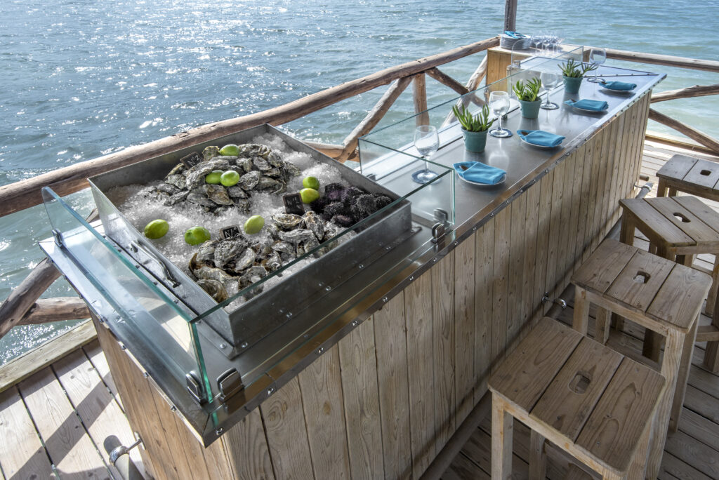 L’hôtel propose une expérience totalement immersive qui éveille tous les sens. Les restaurants de l’hôtel, en terrasse au bord de la lagune ou entouré d’un aquarium circulaire géant offrent un cadre singulier et des mets aux effluves iodées. On y découvre une cuisine raffinée et revisitée avec des produits locaux frais, créant ainsi un lien subtil entre l’expérience culinaire et le cadre enchanteur.