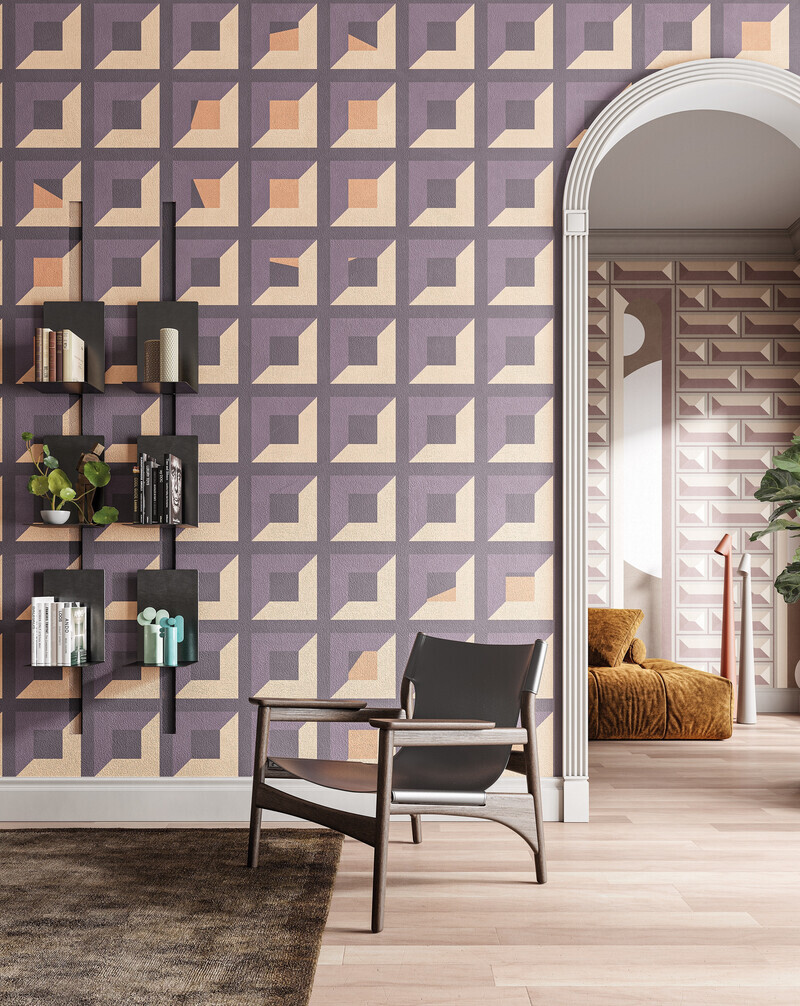 Une interprétation originale de la collection Flow d’Inkiostro Bianco se démarque par sa fluidité et le rythme captivant de ses formes et couleurs. Elle vise à briser les frontières et la rigidité qui trop souvent nous compriment dans notre vie quotidienne. « Nous sommes très enthousiasmés par cette collaboration avec une entreprise telle qu’Inkiostro Bianco, un véritable laboratoire d’idées qui nous a accordé une confiance totale et une grande liberté créative. C’est comme si nous avions pu peindre notre vision sur une toile vierge. Peu importe l’échelle à laquelle nous travaillons, que ce soit des bâtiments, des compléments de mobilier ou maintenant des papiers peints, nous aimons fusionner le langage architectural avec une atmosphère métaphysique », expliquent Francesco Breganze de Capnist et Virginia Valentini, fondateurs de LATOxLATO.