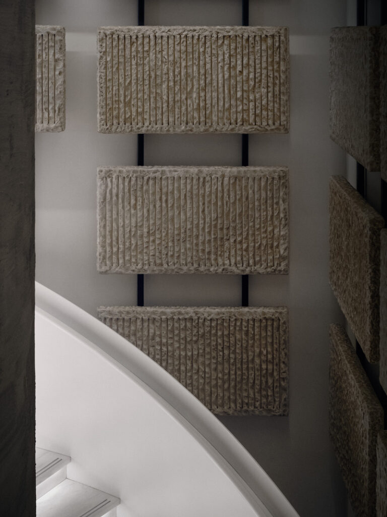 Comme observé sur les Cyclades, cette simplicité se maintient grâce aux choix des matériaux. L’utilisation constante de la pierre, du béton et du plâtre crée une homogénéité et une spécificité qui rendent l’architecture des îles si puissante et d’une intemporalité sans précédent. Les principaux éléments de la composition architecturale du projet sont donc construits à partir de ce “lexique”, l’intention n’étant pas de créer une fausse réplique stylistique du paysage architectural de celles-ci, mais d’en offrir une interprétation contemporaine et pérenne. Les hôtes se souviendront ainsi de la force de la simplicité de l’expérience grecque.