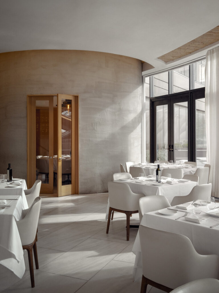 Le restaurant se retrouve au 5e et 6e étage d’un complexe commercial à Hudson Yards, développement immobilier d’importance construit entre 2012 et 2019. Le premier niveau du restaurant (5e étage) se définit par un nouveau bar à vin, bar à poissons crus et bar à yogourt; il permet également d’accéder à la salle à manger principale, située elle au 6e étage; les deux niveaux sont liés par un escalier monumental encerclant un volume d’ascenseur cylindrique.