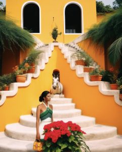 Cette collection SS23 dévoilée fin mai est portée par une campagne mêlant silhouettes élégantes et colorées à une vision stylisée du Mexique et à un univers futuriste. Les mannequins ont été photographiés préalablement puis placés dans des décors et paysages générés. Manque de prise de risque ou volonté de réalisme poussée de la part de la marque ? La question de la pertinence d’utiliser une IA pour ce projet se pose au vu des possibilités de rendus qu’elle pourrait offrir. Le résultat semble presque craintif.