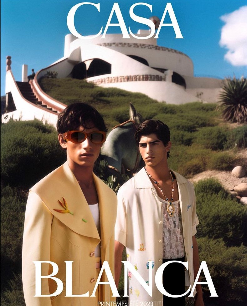 Avec sa campagne SS23 “Futuro Optimisto” dont les images ont été réalisées en collaboration avec le photographe Luke Nugent, Casablanca prend le parti pris audacieux d’explorer le potentiel créatif du logiciel MidJourney. Par là, la marque soulève de vives réactions. En effet, la question de l’avenir du design versus l’IA est soulevée.
