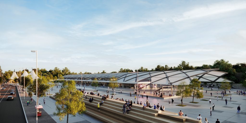 Le projet se veut à la charnière de cette double origine : répondre aux besoins d’équipements d’exposition et culturels d’aujourd’hui et s’inscrire dans une urbanité singulière. Dans cet objectif, se place la démarche environnementale dans laquelle le maître d’ouvrage souhaite s’engager et qui trouve sa traduction dans les concepts architecturaux. La dimension du projet, son insertion dans un site déjà existant, en font un élément structurant à fort impact visuel aux plans du paysage, de l’organisation urbaine et des infrastructures. Il s’agira d’un équipement majeur en raison de sa vocation événementielle et de son ambition d’excellence, mais aussi comme symbole d’un territoire en plein développement.