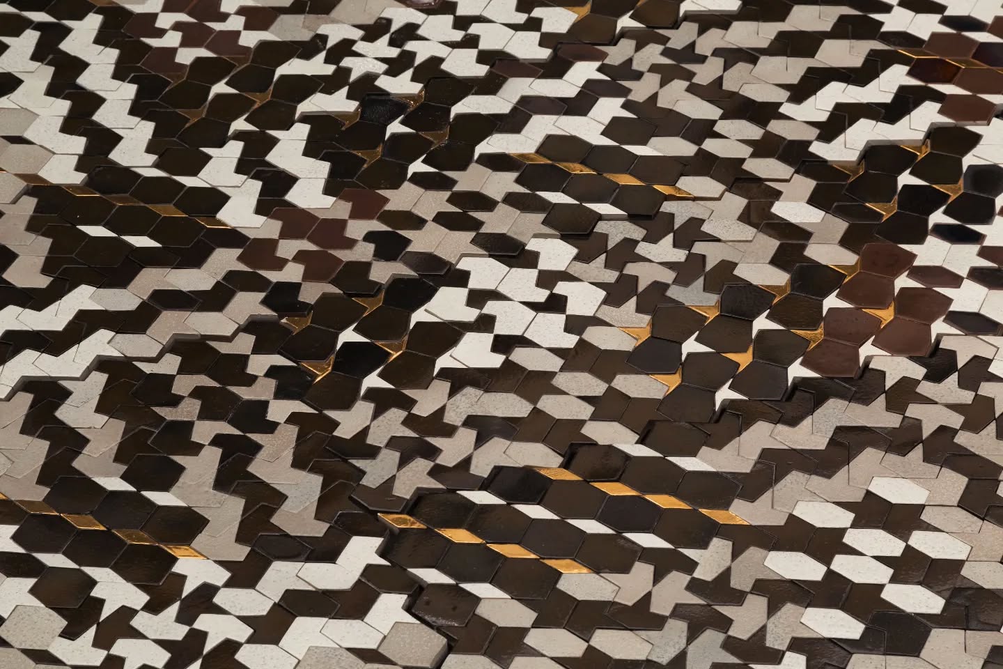 I apply all this geometric game to Zellige to transform spaces and architectural elements. I work with the Tetouan Zellige technique, which is classified by UNESCO as a technique threatened by its disappearance. One of the objectives of my work is to preserve and evolve this technique, thus avoiding its disappearance. I have also managed to rescue old enamel formulas based on minerals and oxides to generate a palette of unique colors and textures with great depth and shine.