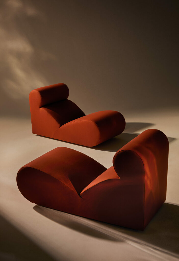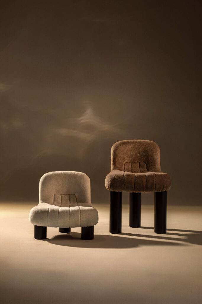 Modèles « Boborelax » (1967) dans le coloris Tiepolo Piment Rouge / Botolo (1973) dans les coloris Cashfur Biancore et Cashfur Caramel