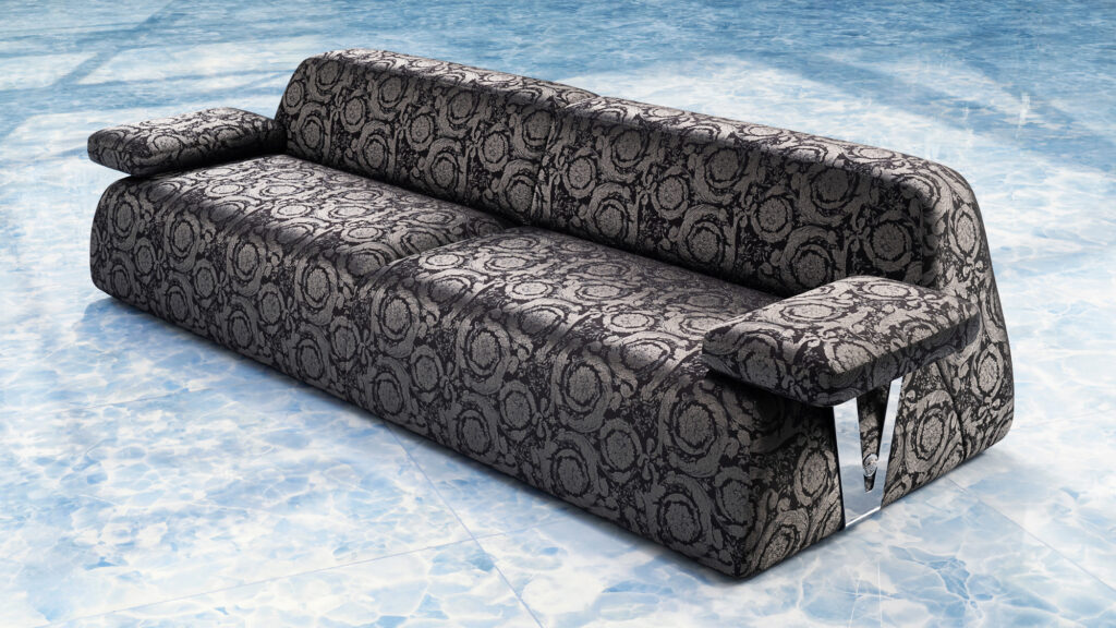 Conçue comme une exploration sensorielle à travers les différentes facettes de l’ADN Versace, l’installation invite les spectateurs à un voyage multisensoriel. Dès l’entrée, les visiteurs sont enveloppés par les codes emblématiques de la marque, des motifs Barocco aux emblèmes Medusa 95, qui tapissent les murs et le sol.