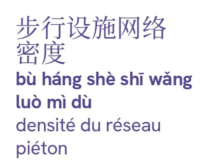Le langage peut être perçu comme un phénomène social à travers lequel s’expriment et se transmettent les pensées d’une civilisation et d’une culture. C’est dans cette optique qu’est né ce lexique sino-français. À travers les mots traduits et expliqués en français, ce lexique permet de saisir les multiples facettes politiques, économiques, culturelles et sociales des villes chinoises. Il est crucial pour les concepteurs d’exploiter cette richesse pour améliorer la conception des espaces urbains. Cette première thématique, axée sur la mobilité, propose une sélection de termes choisis pour leur pertinence dans deux contextes culturels distincts, ou pour leur importance réglementaire et technique.