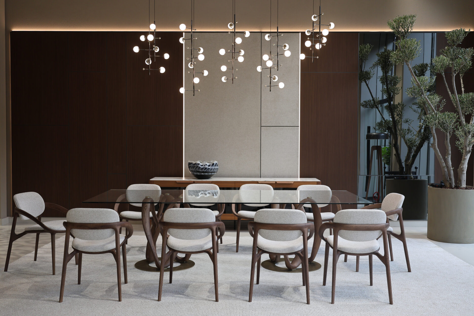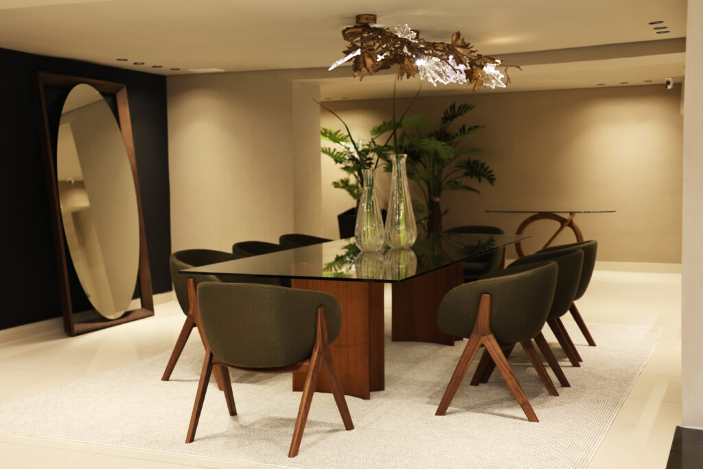 Le showroom présente 21 ambiances différentes qui mettent en lumière le savoir-faire artisanal de Porada, notamment son expertise dans le travail du bois. Ces espaces offrent aux visiteurs une immersion dans des intérieurs élégants et harmonieux, allant du salon à la chambre à coucher, en passant par la salle à manger et le bureau.