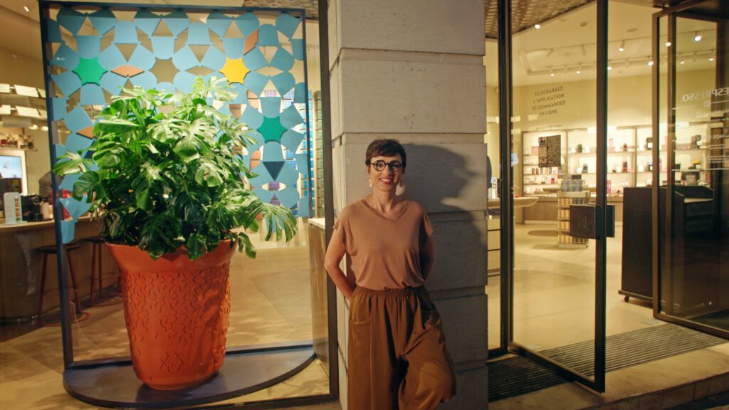 Inspirée par les traditions artisanales marocaines, Myriam Mourabit a conçu des pots en terre cuite uniques, façonnés pour rappeler la forme emblématique des capsules Nespresso. Ces pots contiennent un compost fabriqué à partir de marcs de café recyclés, illustrant l’idée du retour à la terre. « Ces pots symbolisent un geste conscient pour la planète, démontrant que même les petites actions peuvent avoir un impact significatif », explique la designer.