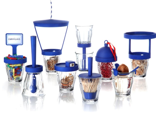 Dans la même veine, les très iconiques verres Duralex étaient passés par leur studio pour s’offrir une cure de jouvence à base d’objets dits “add-on”, qui s’ajoutent à l’objet d’origine, ici le verre, pour en transformer la fonction. Rangement de quincaillerie, cloche, mangeoire à oiseaux, taille-crayon, ou encore support pour faire germer un avocat, tout y est !