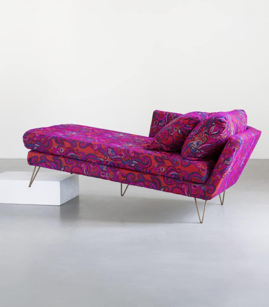 Le prodige de la mode a développé un jacquard de soie, laine et mohair aux couleurs vibrantes pour recouvrir une méridienne. Passionné par la décoration, il voit cette pièce comme une extension naturelle de son travail textile. “J’ai voulu préserver confort et désirabilité tout en explorant une nouvelle discipline”, explique-t-il.
