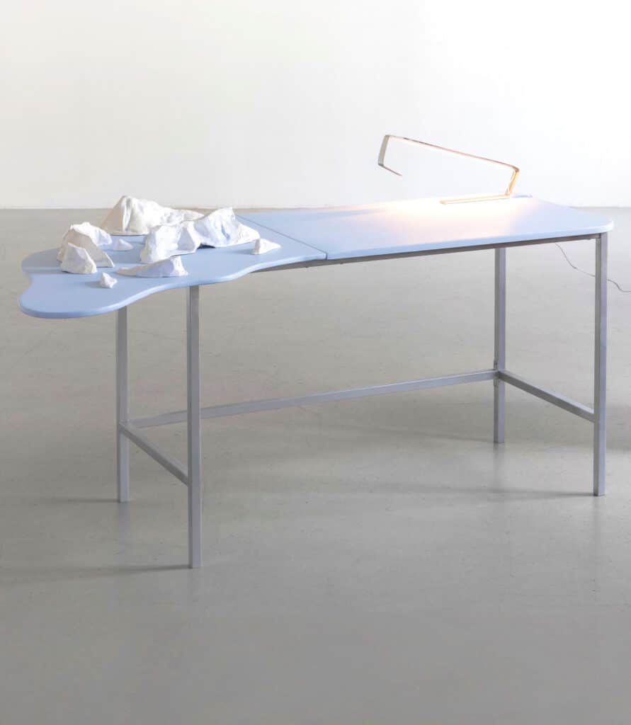 Artiste plasticienne, Pascaline Rey a donné une nouvelle dimension à un bureau industriel en y ajoutant un paysage de banquise en céramique et une lampe en acier. “J’ai voulu créer un espace poétique et sensible, loin de la simple fonctionnalité”, confie-t-elle.