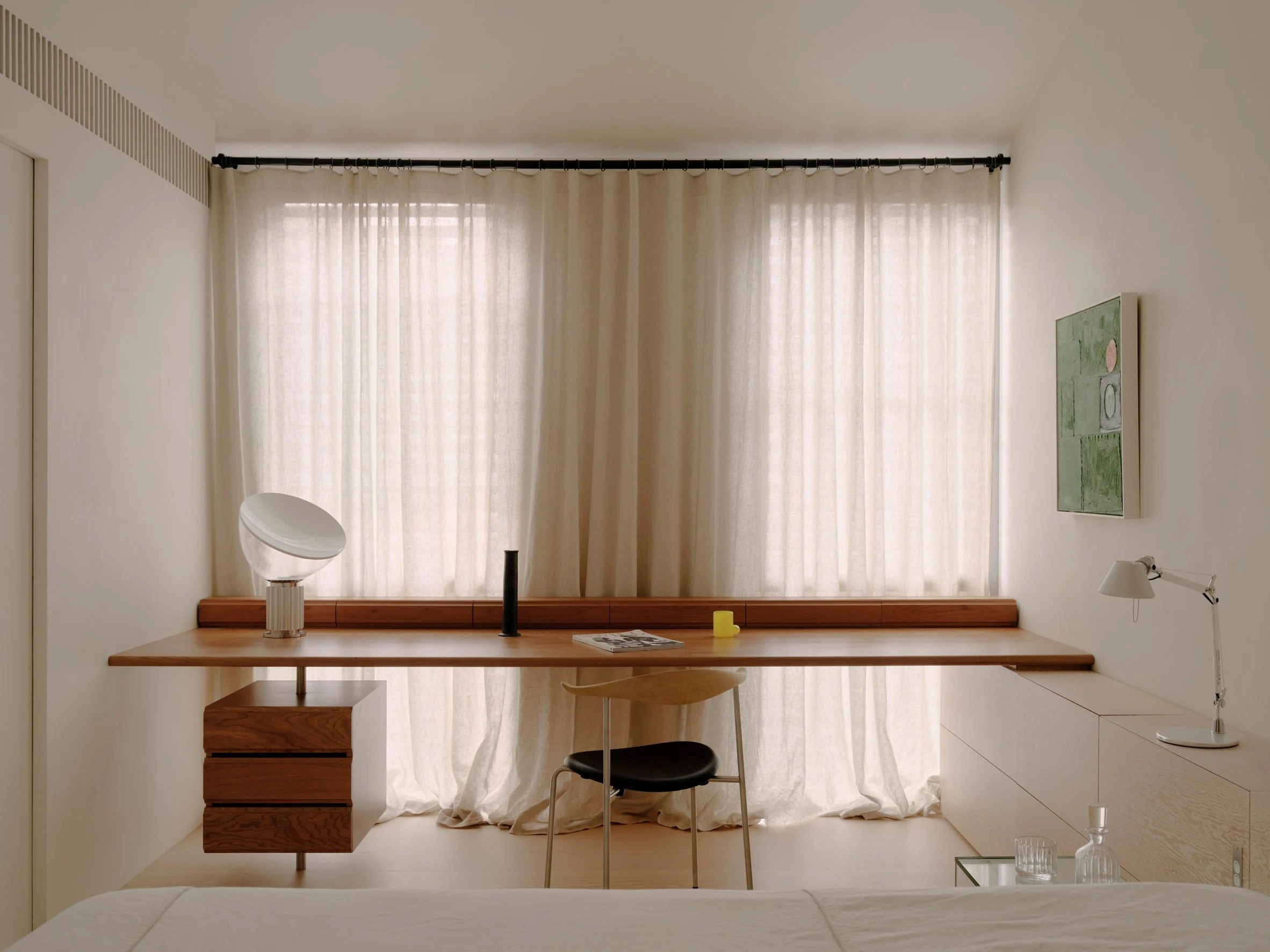 À l’étage, Pattern Studio a créé quatre suites séparées pour la famille – trois au premier étage et une chambre d’amis au deuxième étage – chacune avec des espaces pour dormir, se laver et se détendre. Lisse mais pas rigide, jeune mais adulte, la maison est conçue pour convenir à une famille qui veut vivre côte à côte – mais pas les uns sur les autres.