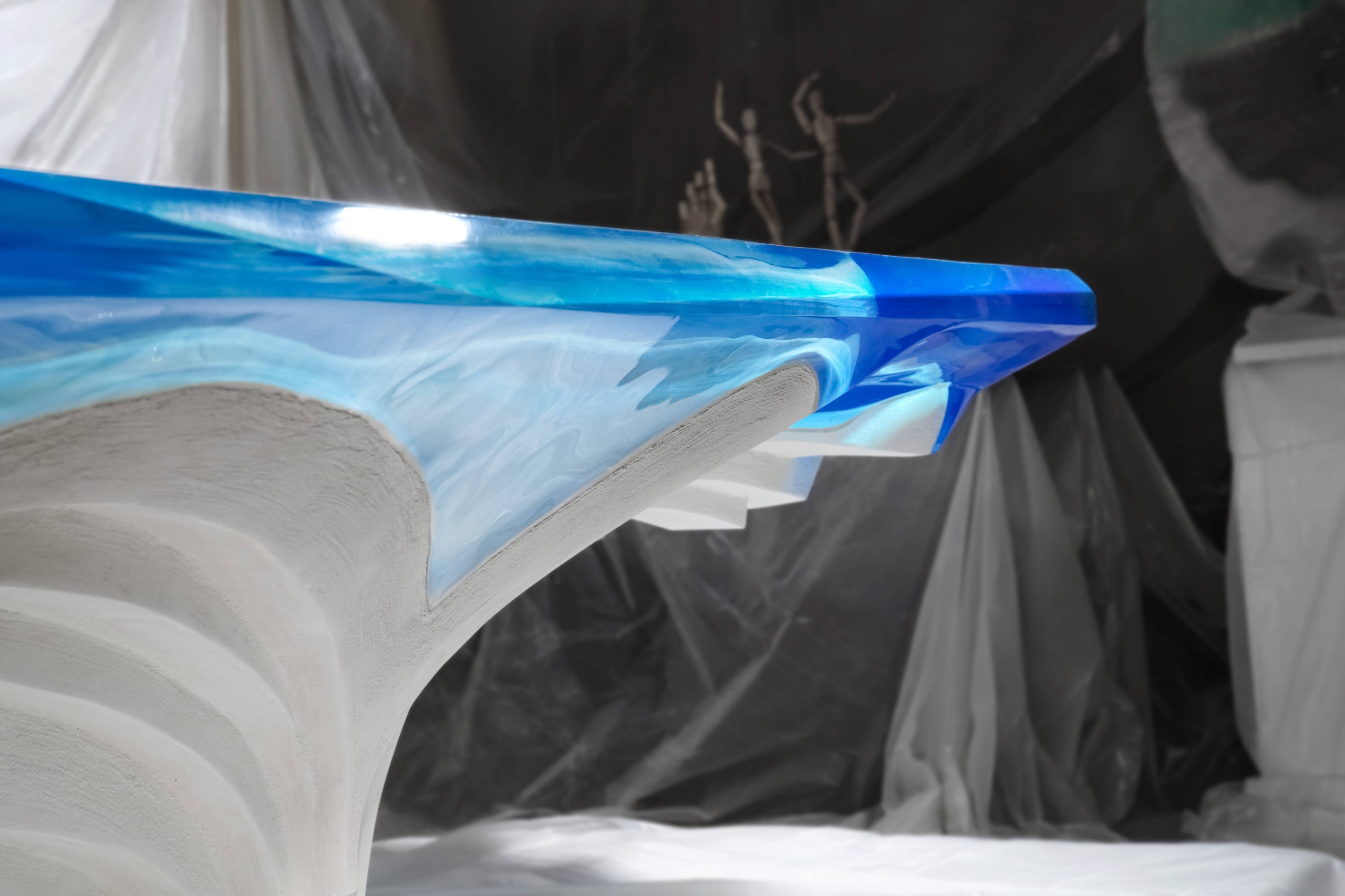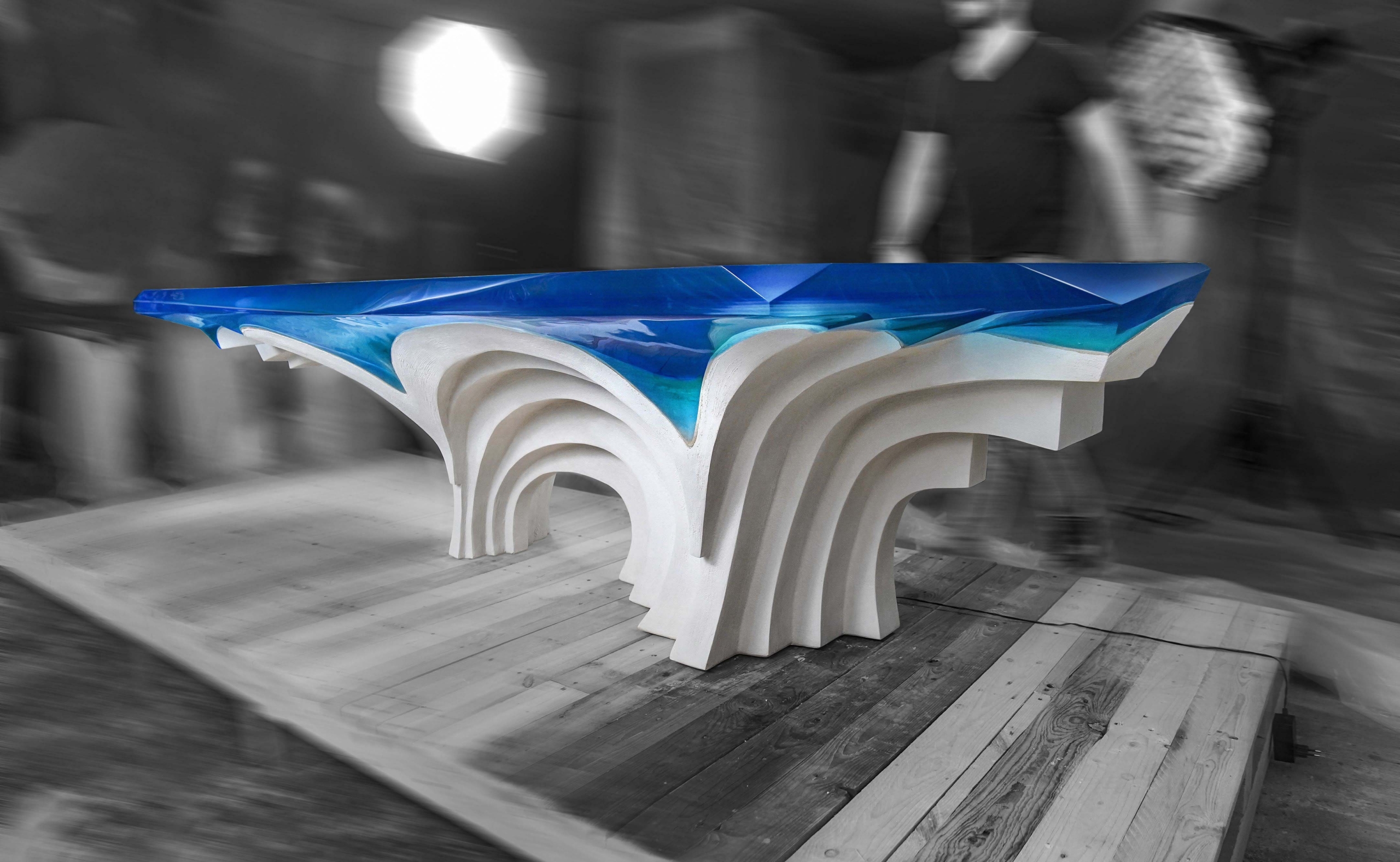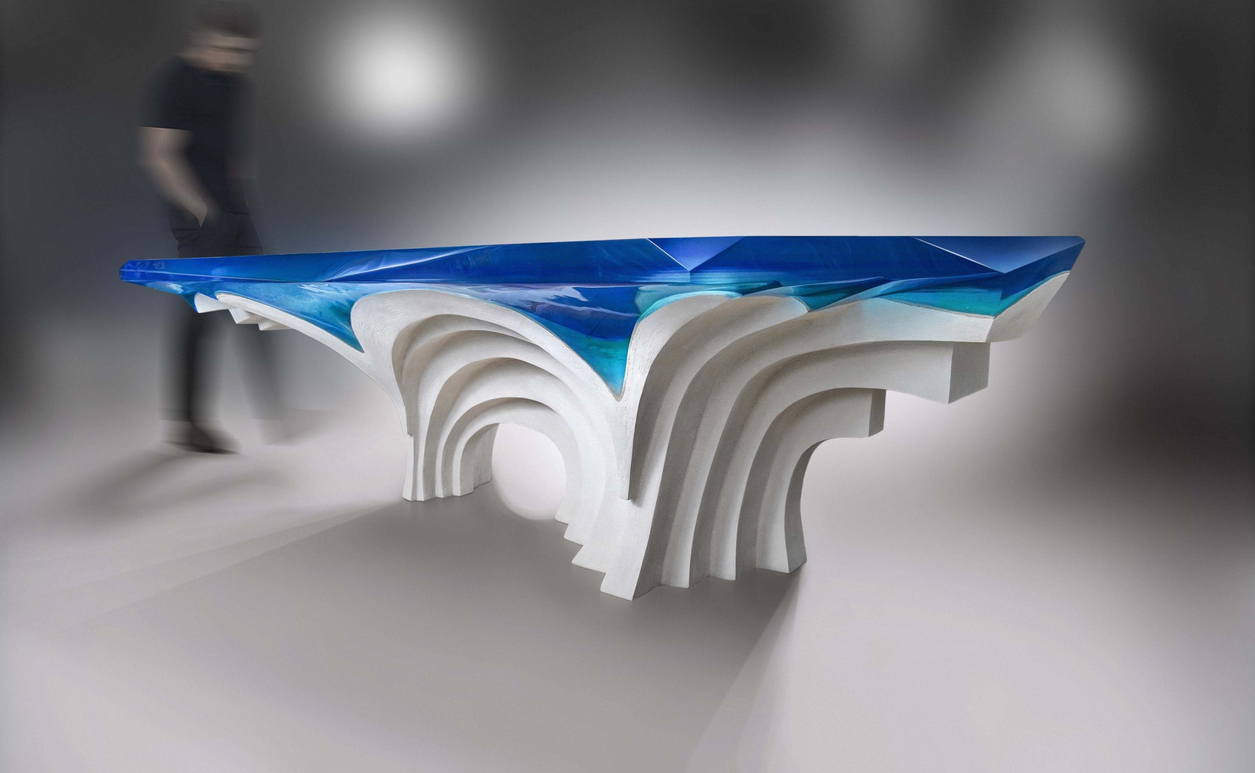 De plus, la table intègre environ 1000 fibres optiques tissées dans sa structure, créant une illumination qui offre un spectre de couleurs vastes et variées. Cette dualité d’éclairage évoque un paysage nocturne côtier, où les frontières entre la terre et la mer se fondent harmonieusement.