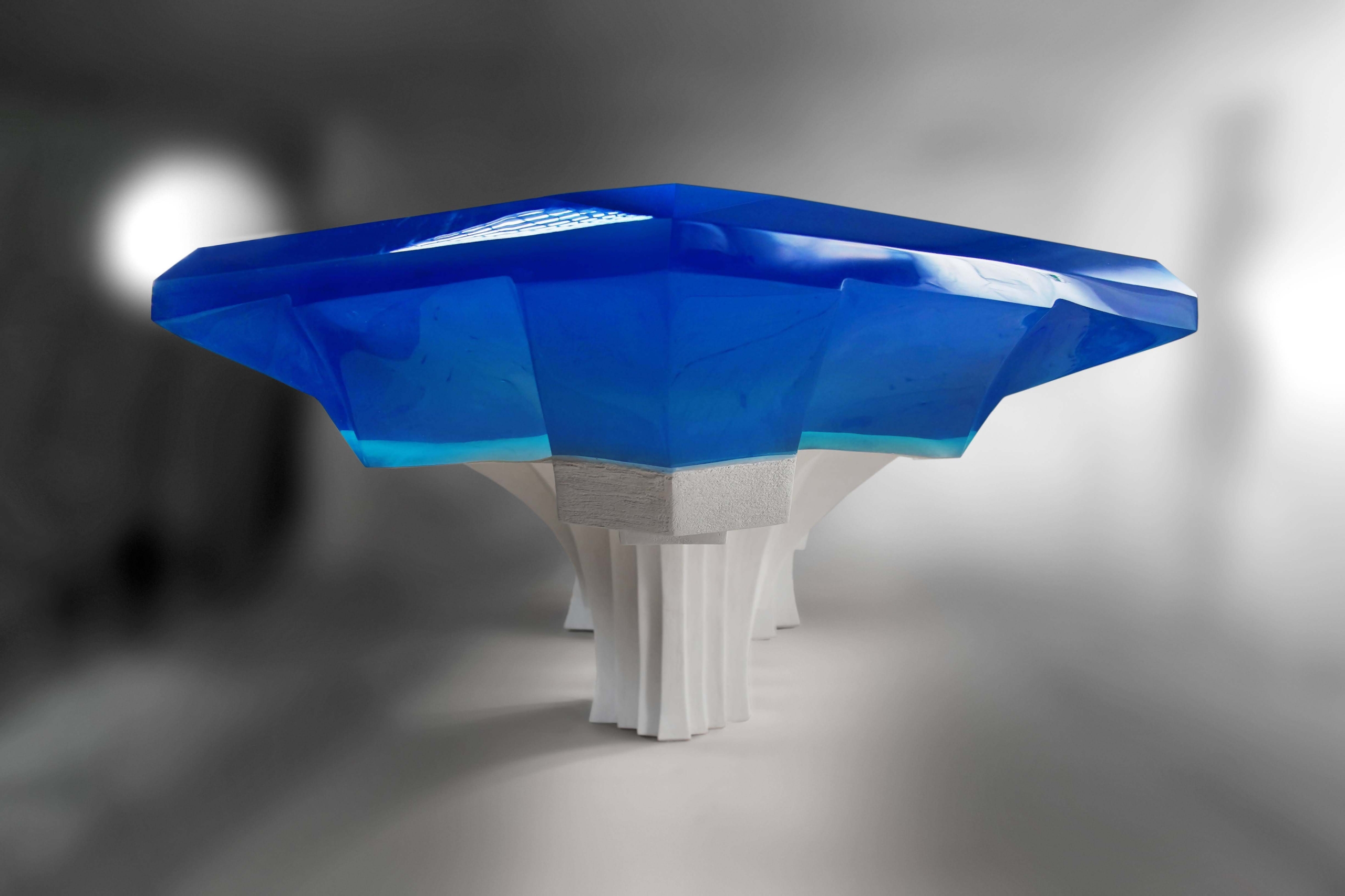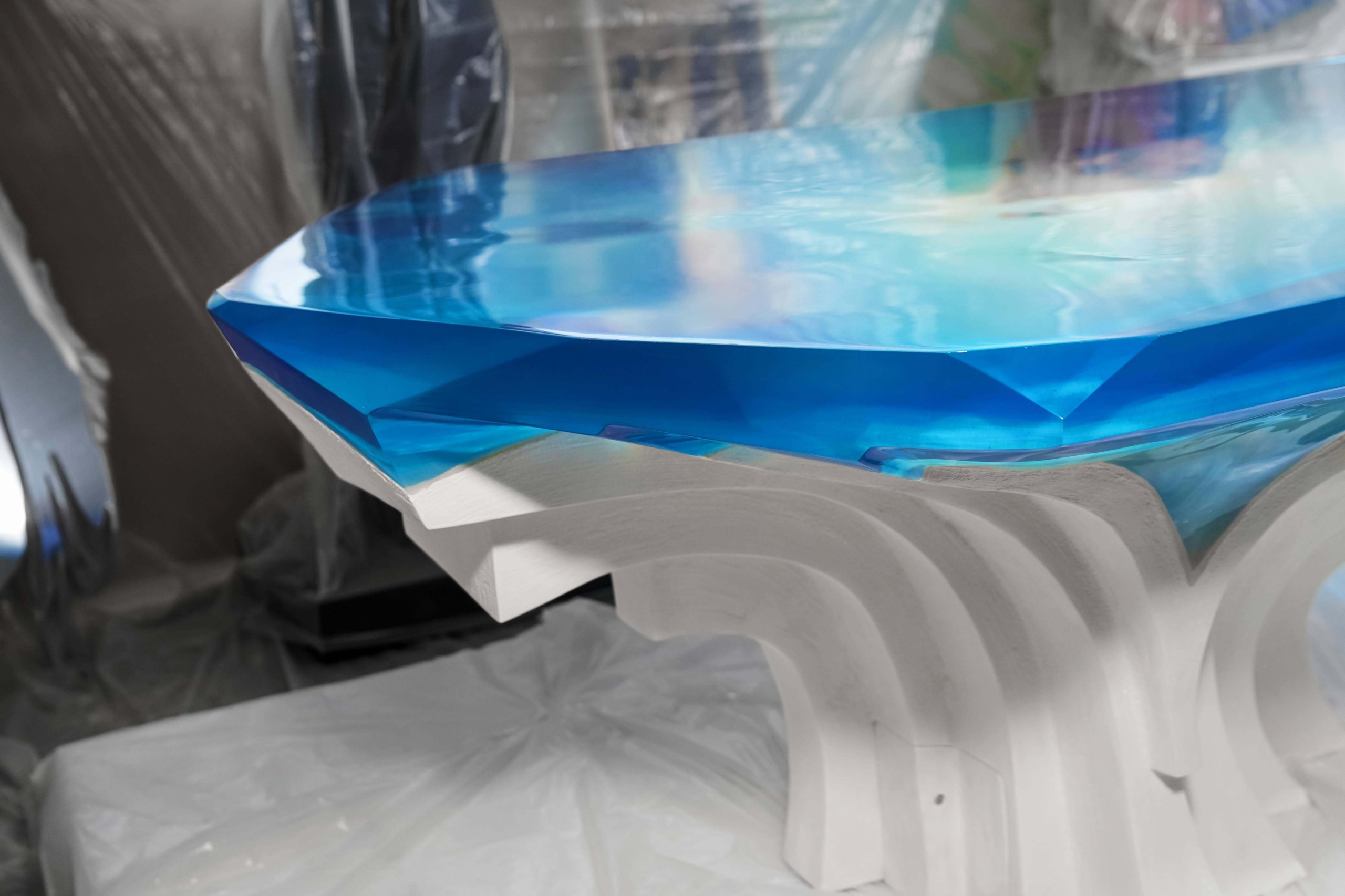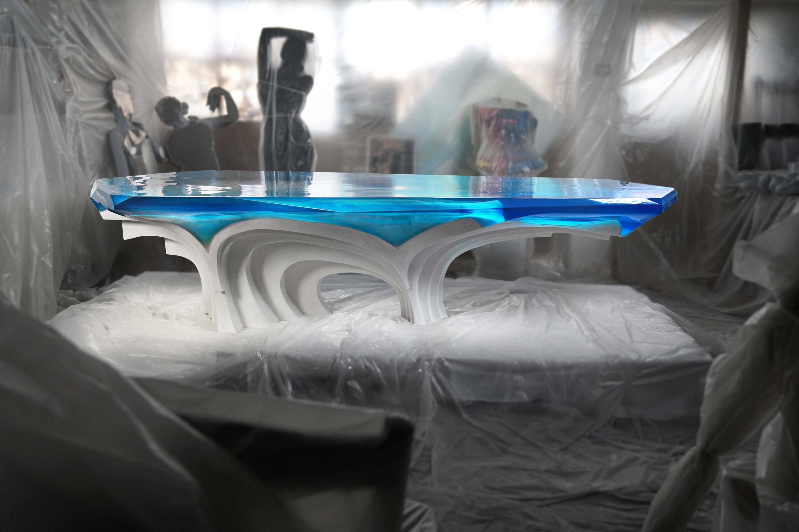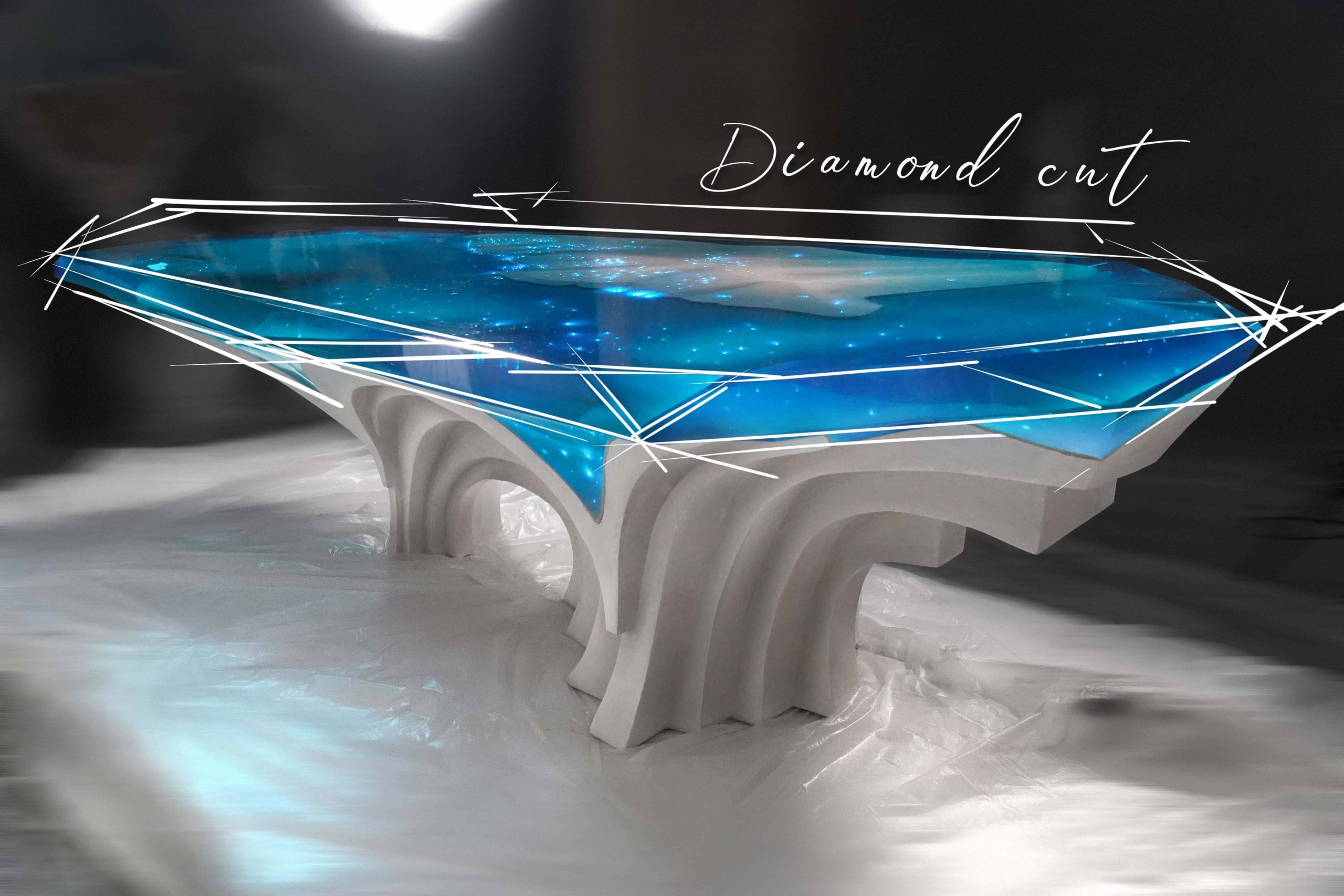 De plus, la table intègre environ 1000 fibres optiques tissées dans sa structure, créant une illumination qui offre un spectre de couleurs vastes et variées. Cette dualité d’éclairage évoque un paysage nocturne côtier, où les frontières entre la terre et la mer se fondent harmonieusement.