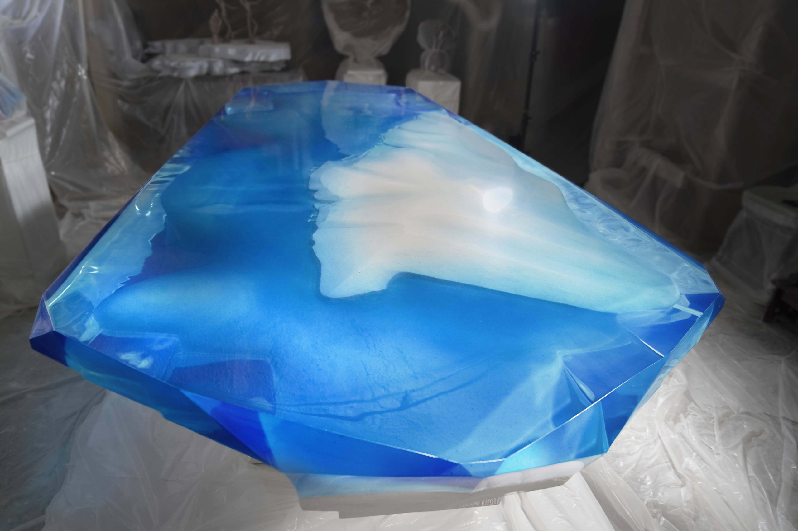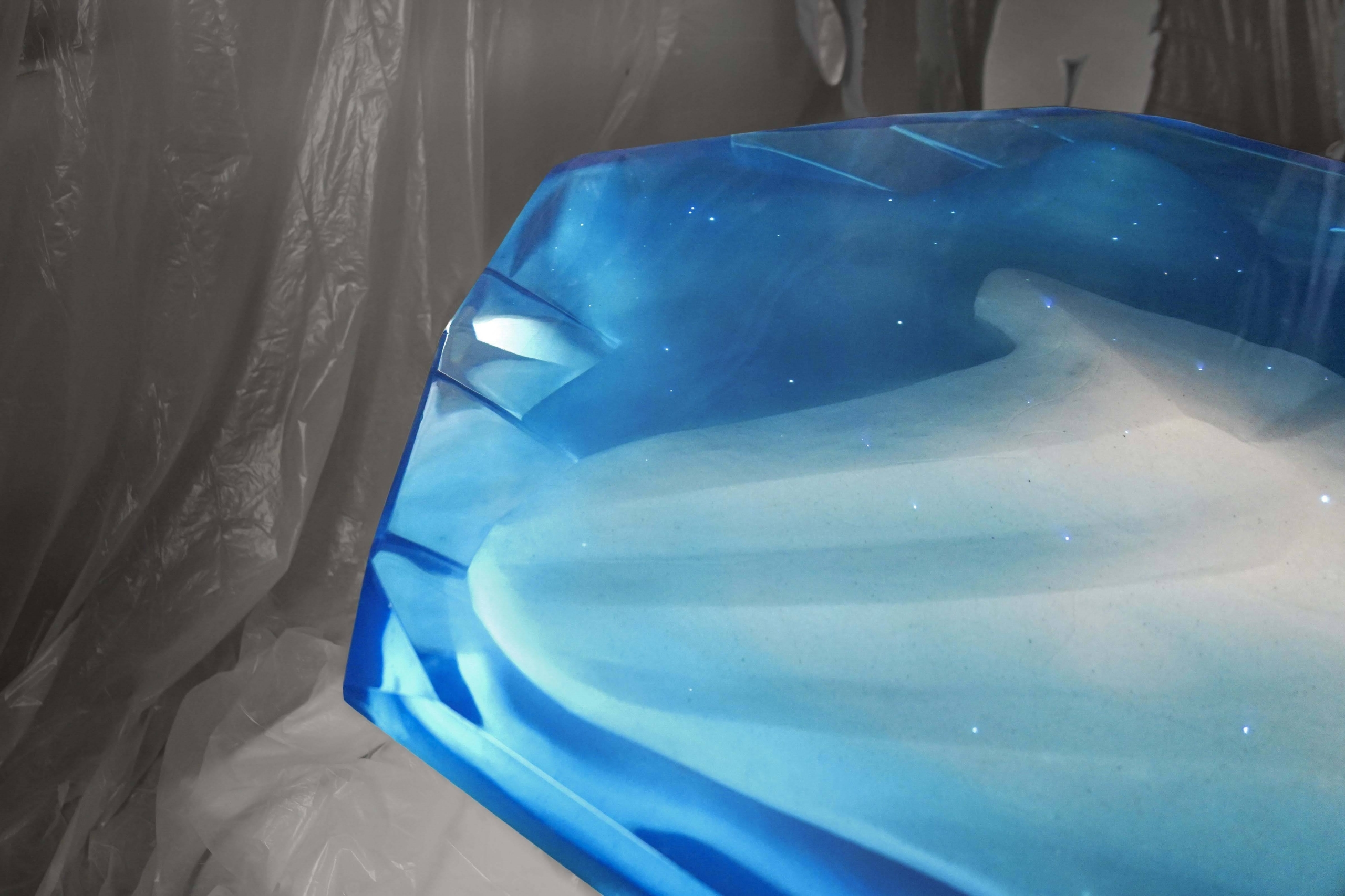 Matériaux : Jesmonite, verre acrylique, éclairage à fibre optique