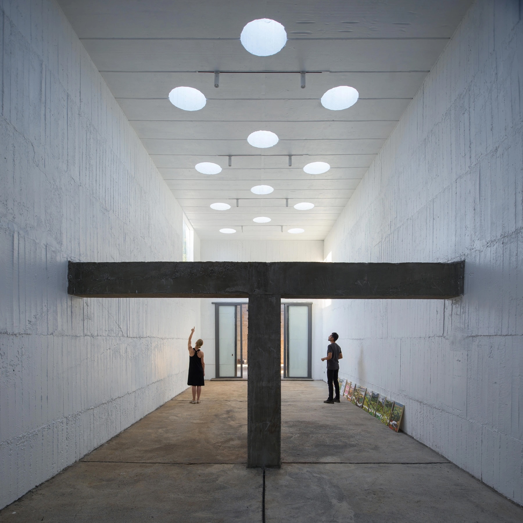 Il y a des moments d’intimité – des recoins calmes, des vues encadrées – mais également un sentiment de monumentalité émerge du poids de la structure, de sa négociation minutieuse de l’opacité et du vide.
