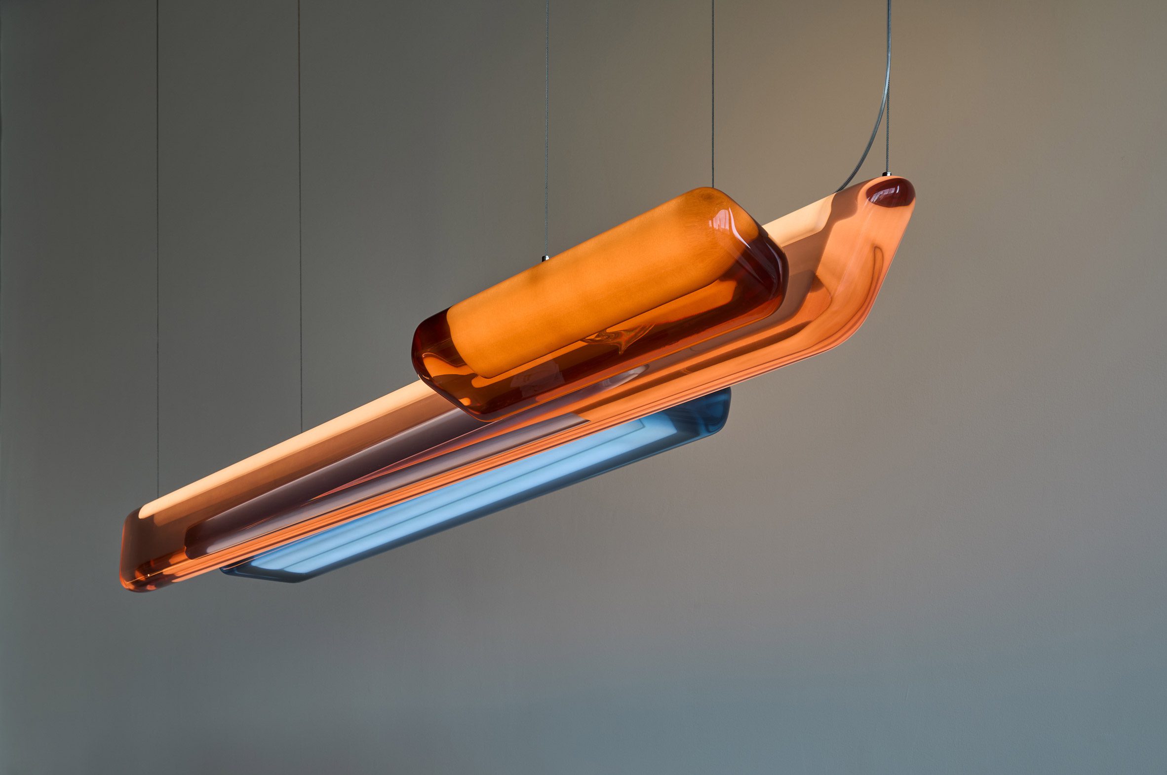 Avec Cairn, le designer souhaitait brouiller les frontières entre sculpture, design et art. L’exposition, présentée au Groot Handelsgebouw de Rotterdam, présente des pièces à poser, suspendues et montées, aux couleurs chaudes allant de l’orange profond, de l’ambre et de l’or à un lilas délicat.