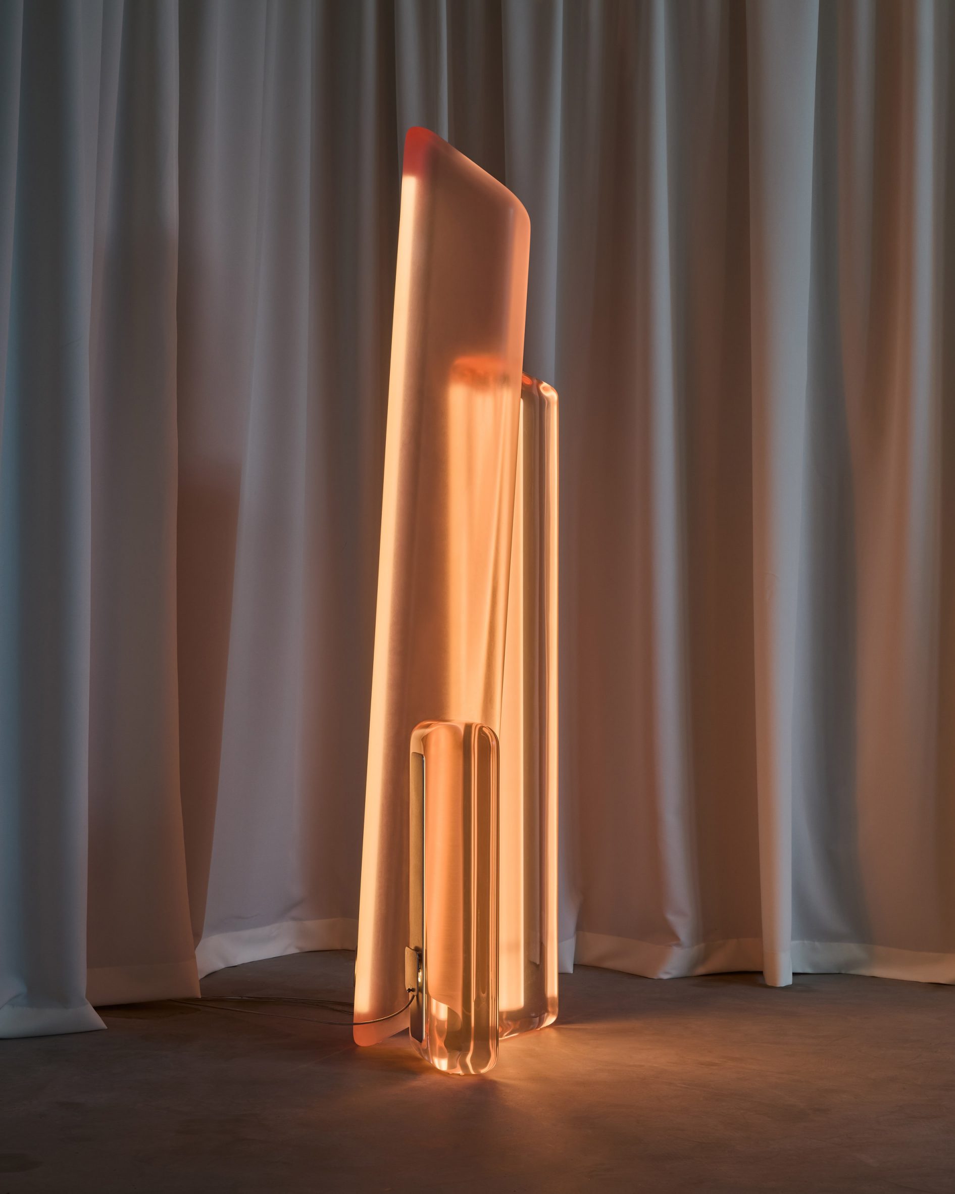 Cette série explore l’interaction de la lumière avec les matériaux transparents. Plus que de modeler la résine, Laurids Gallée souhaitait façonner la manière dont la lumière se déplace dans la matière.